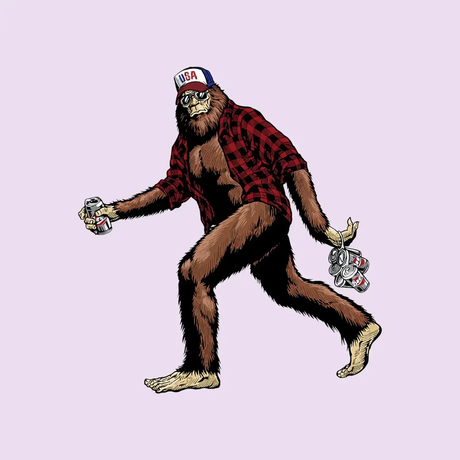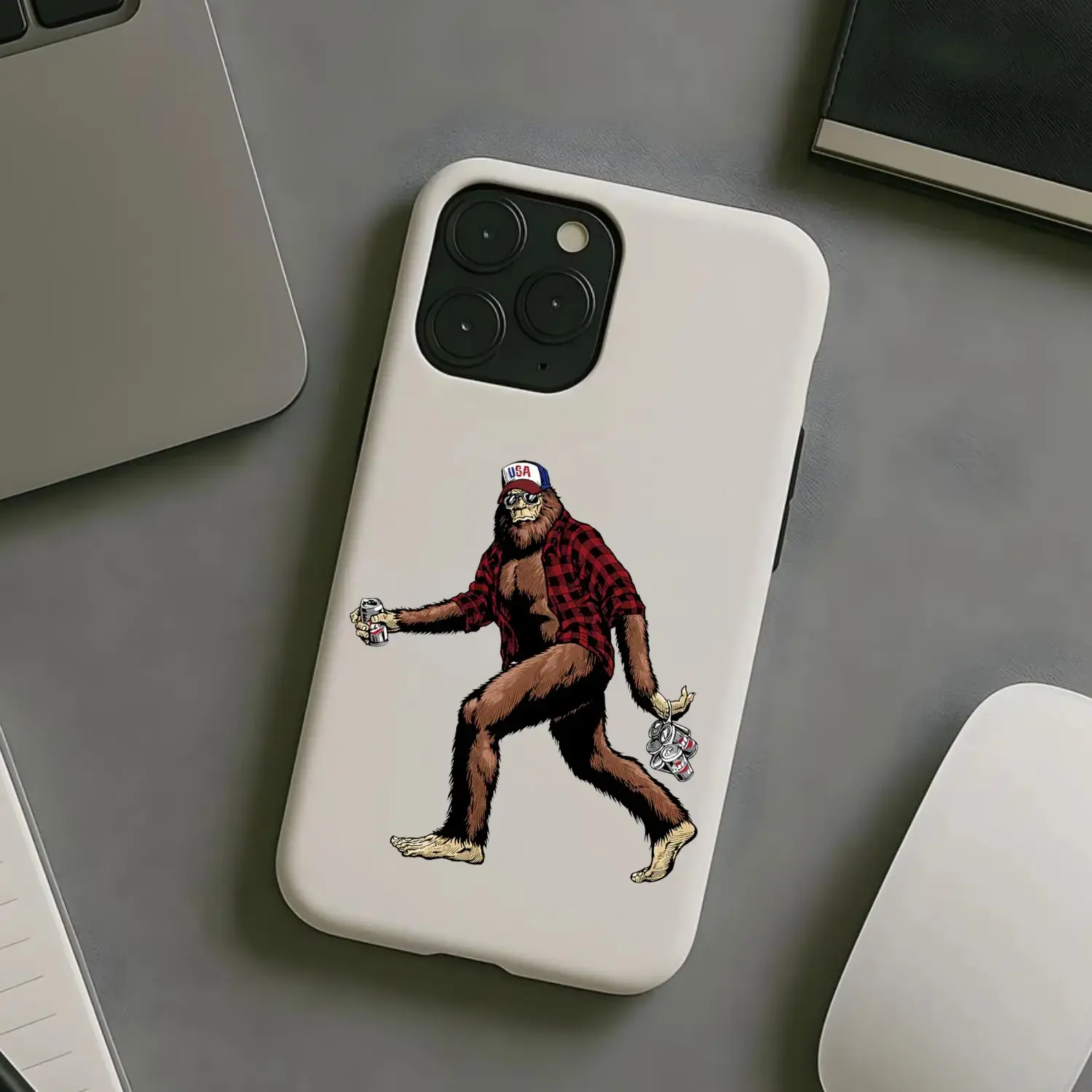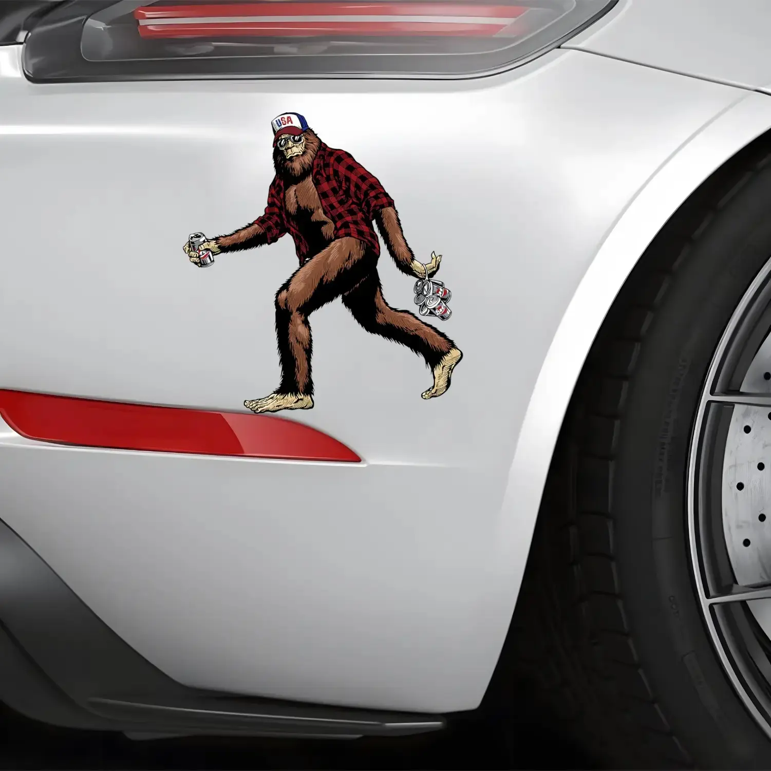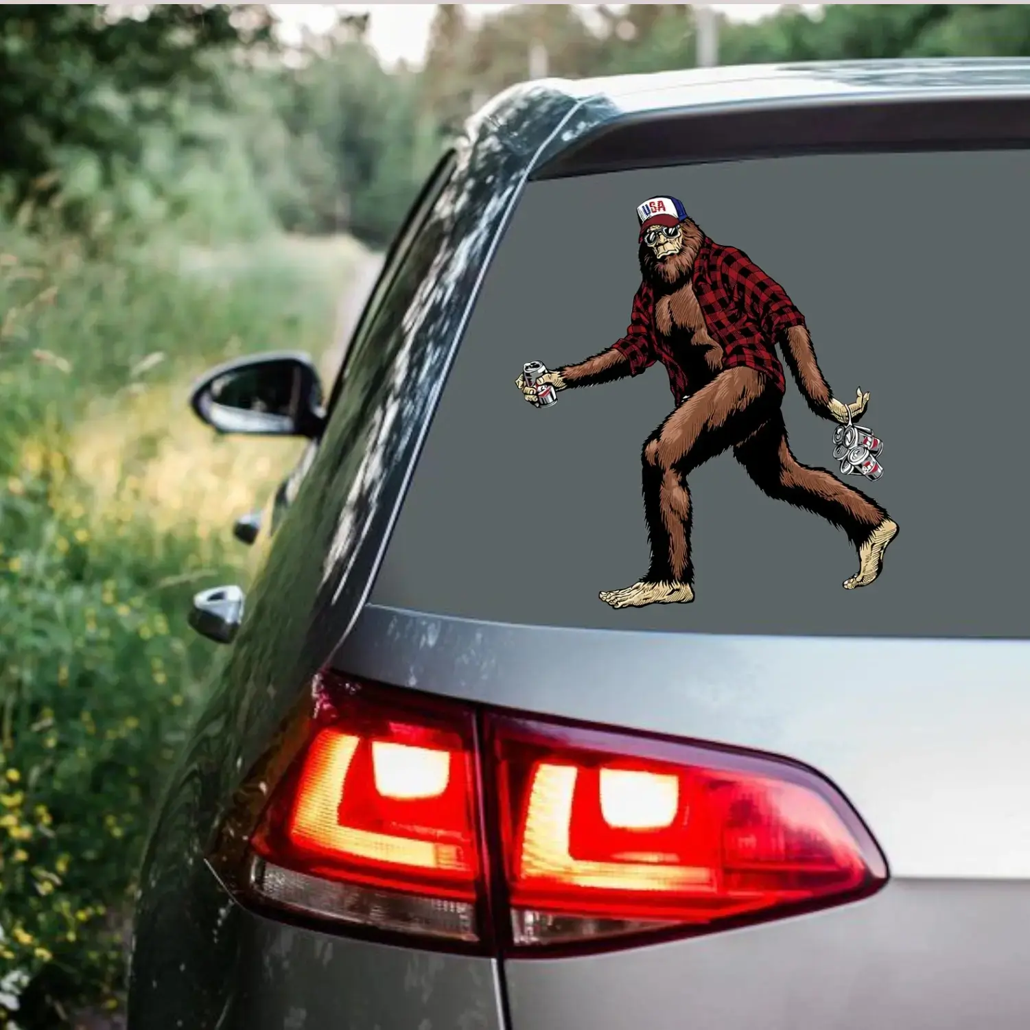 Funny Bigfoot Beer Sticker, Sasquatch USA Hat Vinyl Decal, Drinking Meme Outdoor Sticker for Car Truck Window Laptop