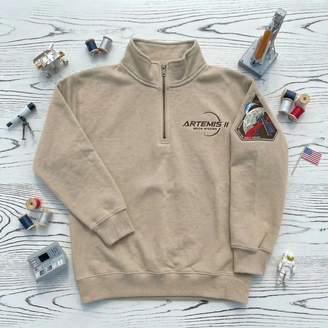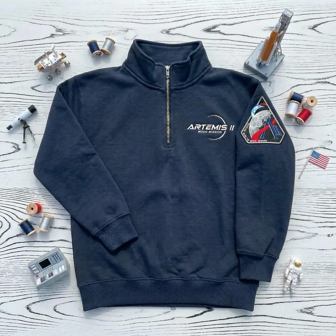 Artemis II Moon Mission Embroidered Quarter Zip Sweatshirt, Space Launch Apparel