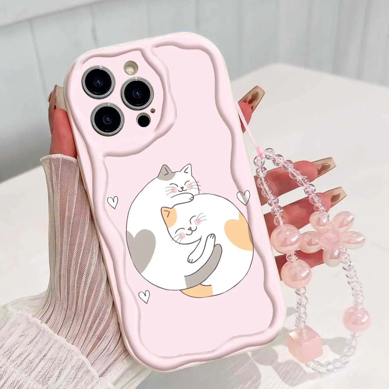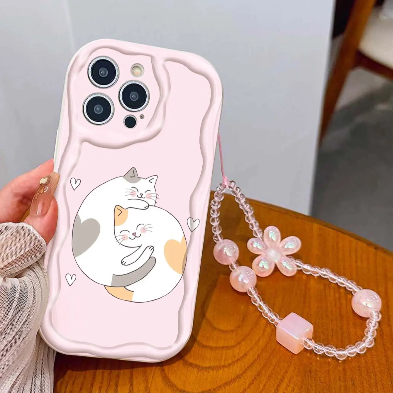 Cute Cat Design Tpu Phone Case with Lanyard, Shockproof Wave Edge, Compatible with Apple Models 11-17 Pro Max, Perfect Gift for Girls