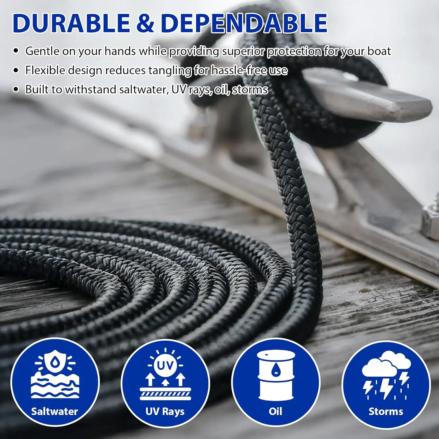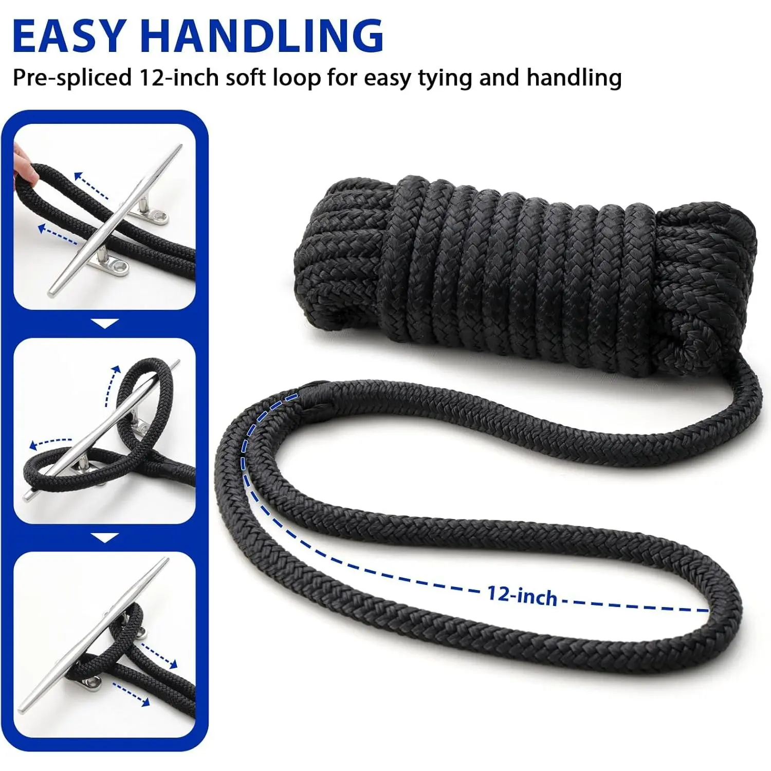 Boat Dock Lines Marine Rope - 3/8" x 15ft with Pre-Spliced 12" Loop Double Braided Nylon Ropes Bumper Tie Mooring Line for Boats Docking Pontoon Boating Accessories - 4 Pack