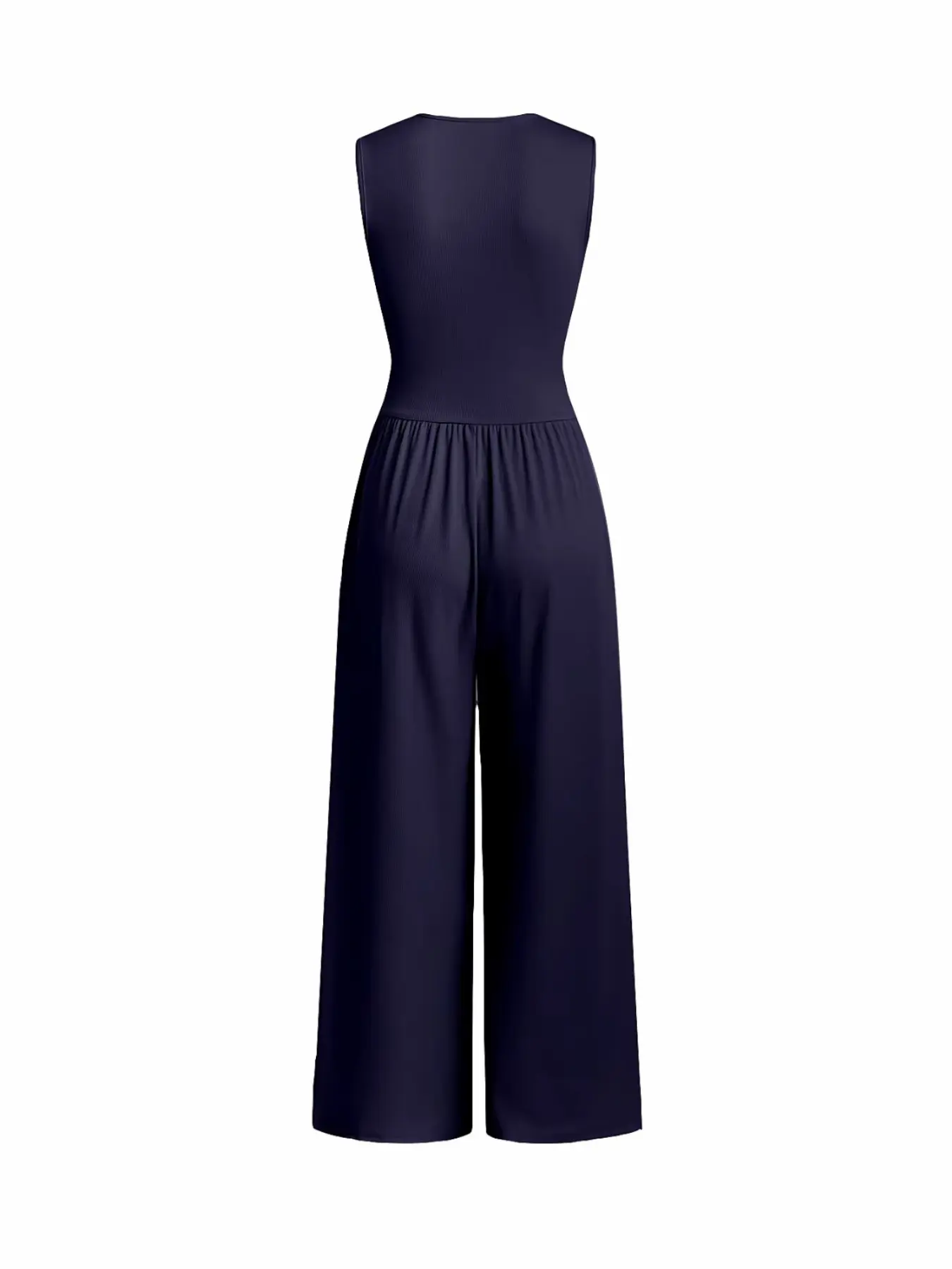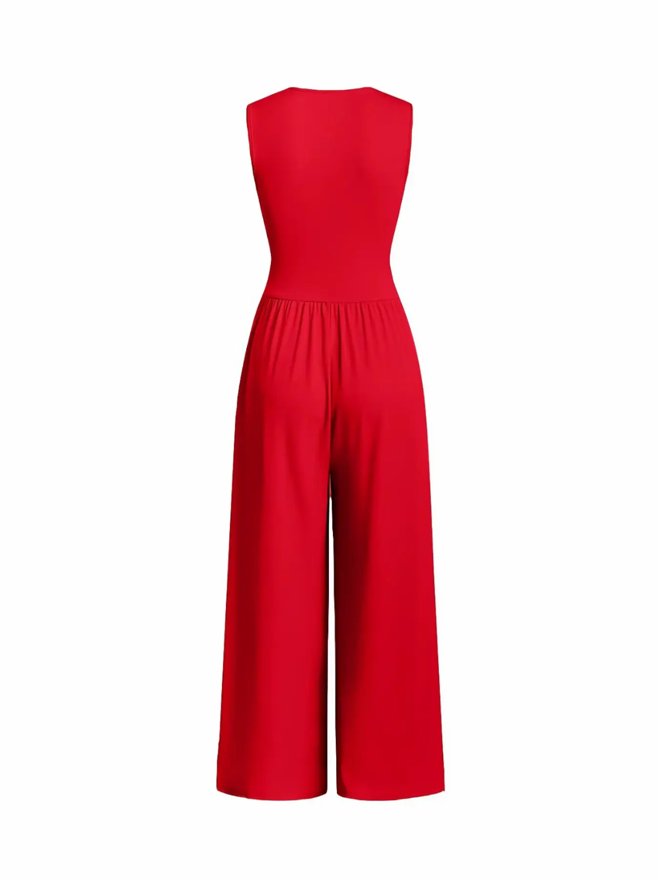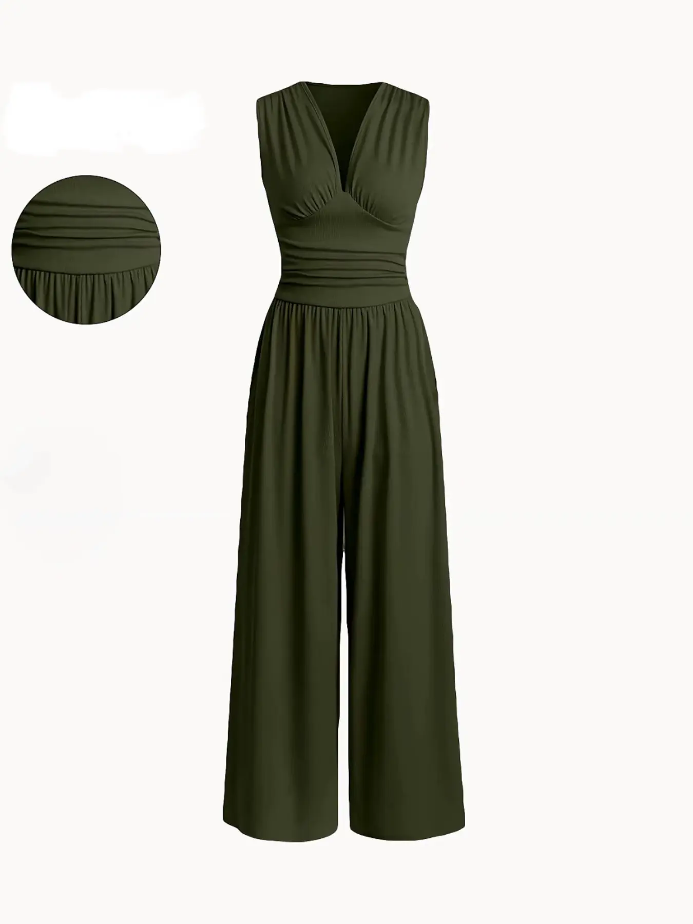 Women's Plain Ruched Deep V Neck Wide Leg Jumpsuit, Sleeveless Ribbed Jumpsuit for Daily Wear, Ladies Clothes for All Seasons, Casual Basic Jumpsuit, Casual Jumpsuits