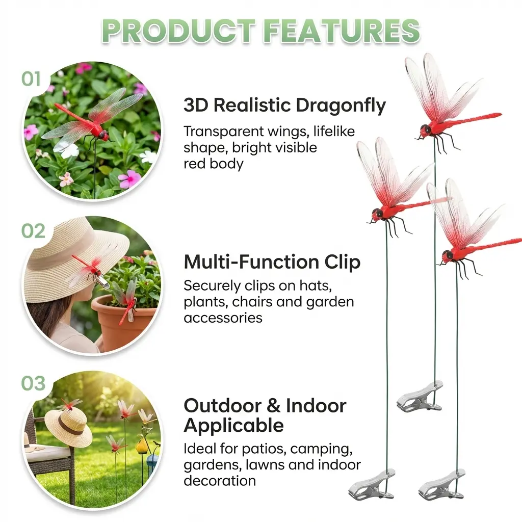 5. 12 Pcs 3D Dragonfly Clips, Outdoor Garden Decor for Patio Yard Plants, Waterproof Flower Pot Stakes Spring Home Decor