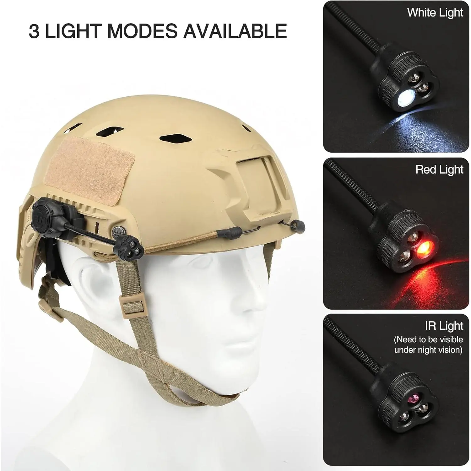 Tactical Helmet Light with White+IR+Green/Red LED Task Lamp, Military Signal Light with 4 Replaceable Accessories Mounts