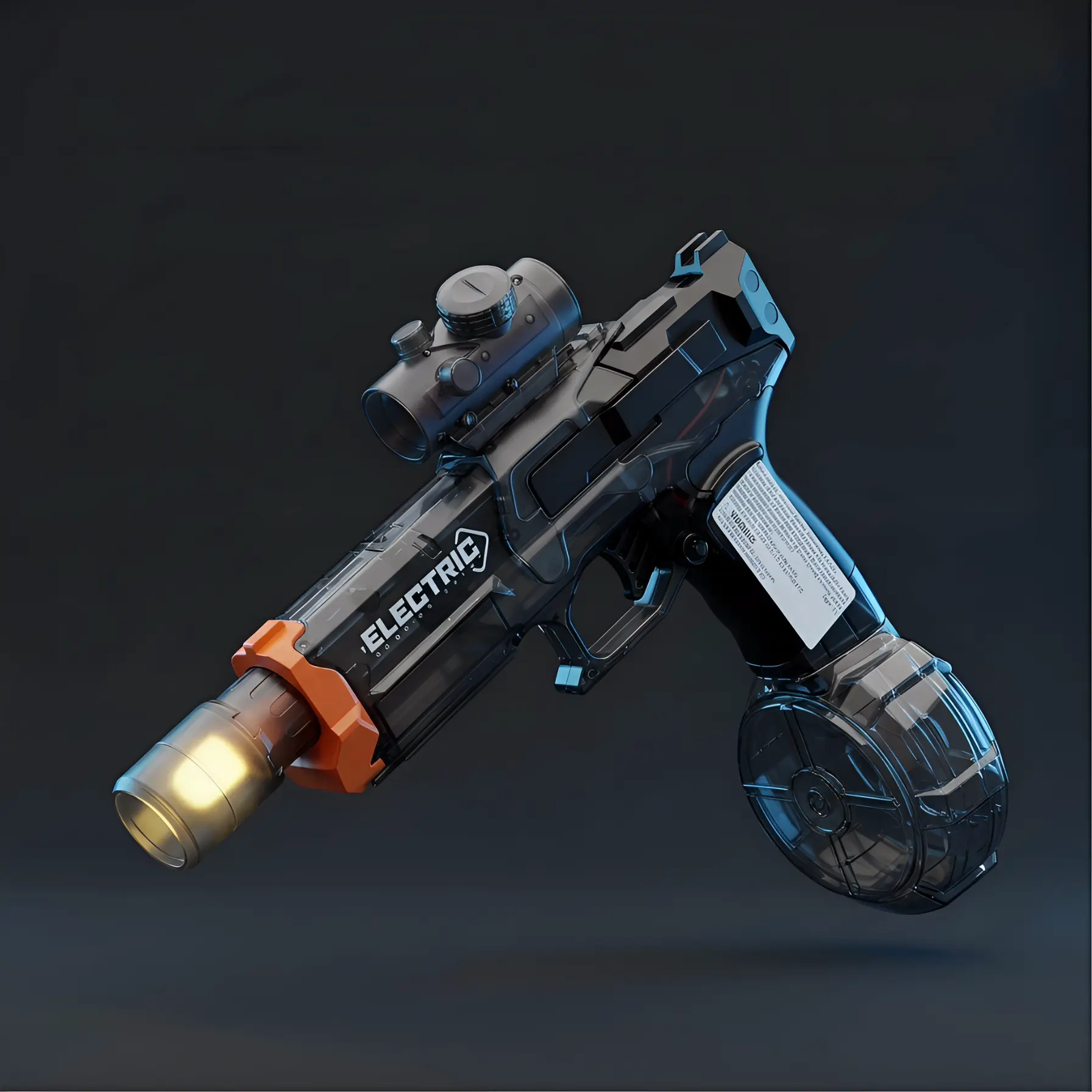 Upgrade your water warfare Electric Water Blaster. No more manual pumping—just pure, high-speed tactical fun! Designed with a stunning transparent "Cyberpunk" body, this blaster lets you see the mechanical power in action every time you pull the trigger.