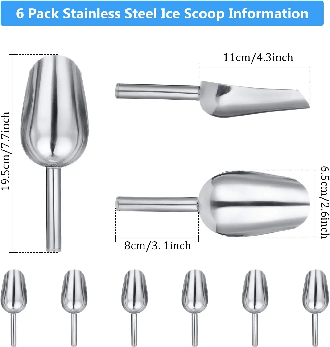 ·What you will receive: you will get 6 pack stainless steel scoops in silver color, finished with smooth surface, shiny and pleasing