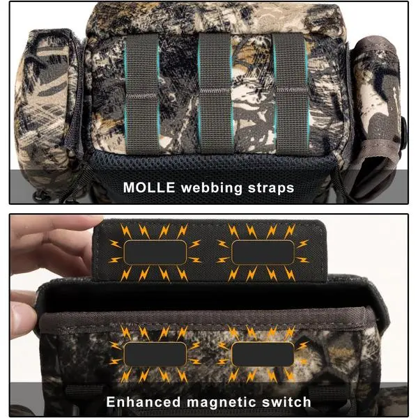 Strong magnetic switches ensure secure storage. Wider back strap with breathable mesh material provides comfort for long use. Designed for outdoor adventurers.