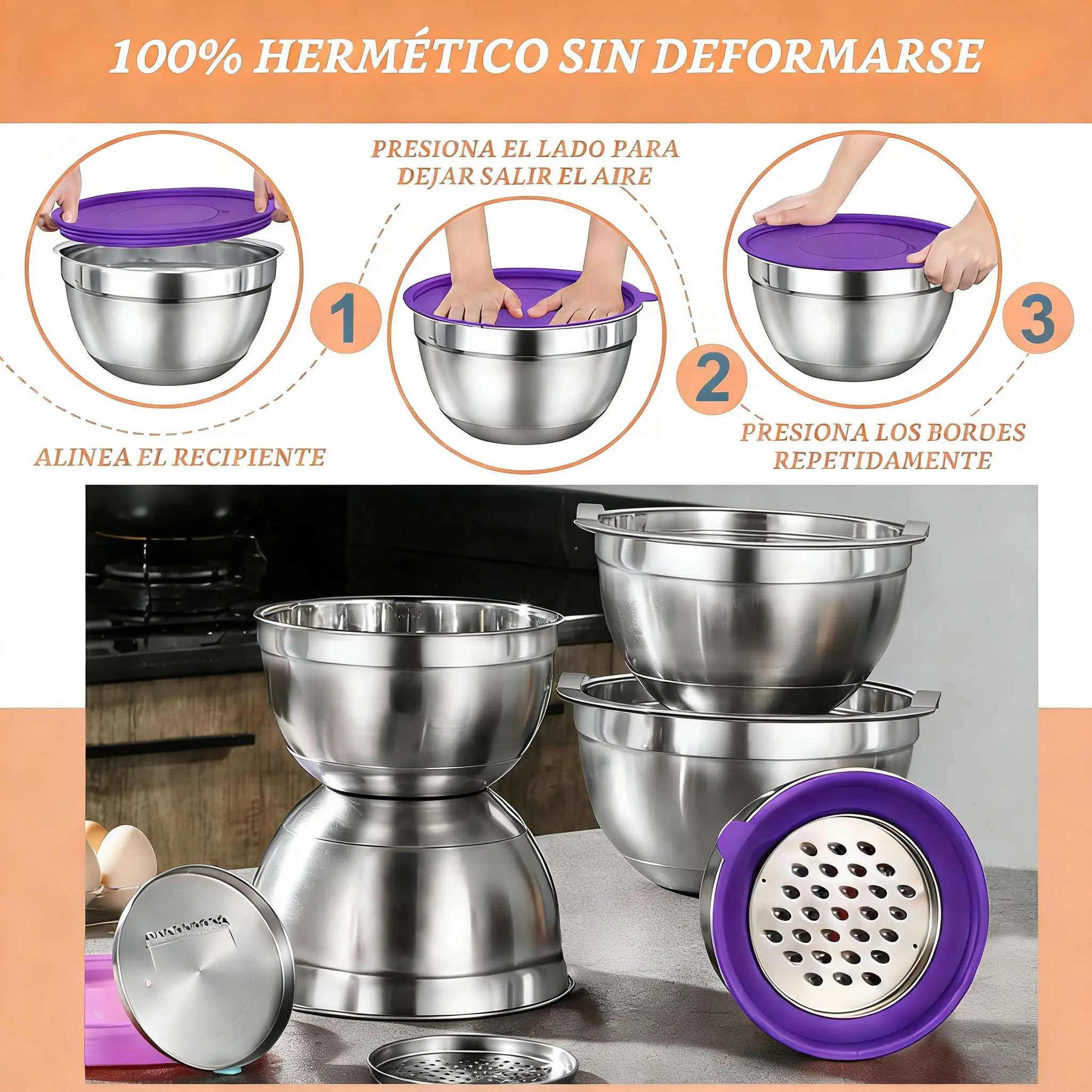 ·AIRTIGHT LIDS & 3 GRATER ATTACHMENTS:The airtight lids that come with this mixing bowl set make it easy to store ingredients and leftovers without worrying about spills or leaks. 3.5qt had a removable lid inside the main lid, for adding contents or pairing it with your blender without removing the entire lid to prevent splash. This bowl set comes with 3 different grater attachments (slicing/grating/shredding) just shred or slice right into the bowl!