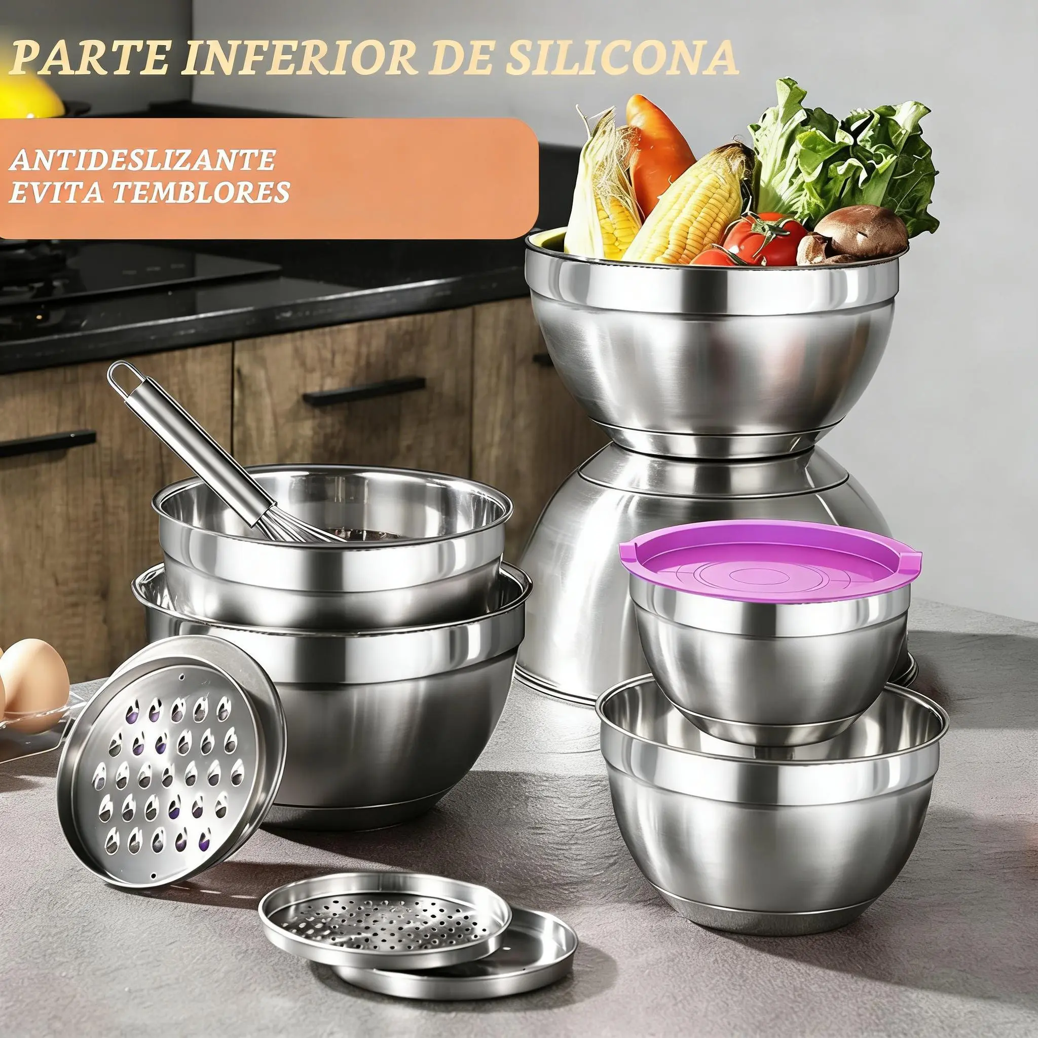 Están muy bonitos todos traen tapadera y uno trae tapa especial y accesorios adicionales para rallar alimentos y unos utensilios como para hacer pasteles