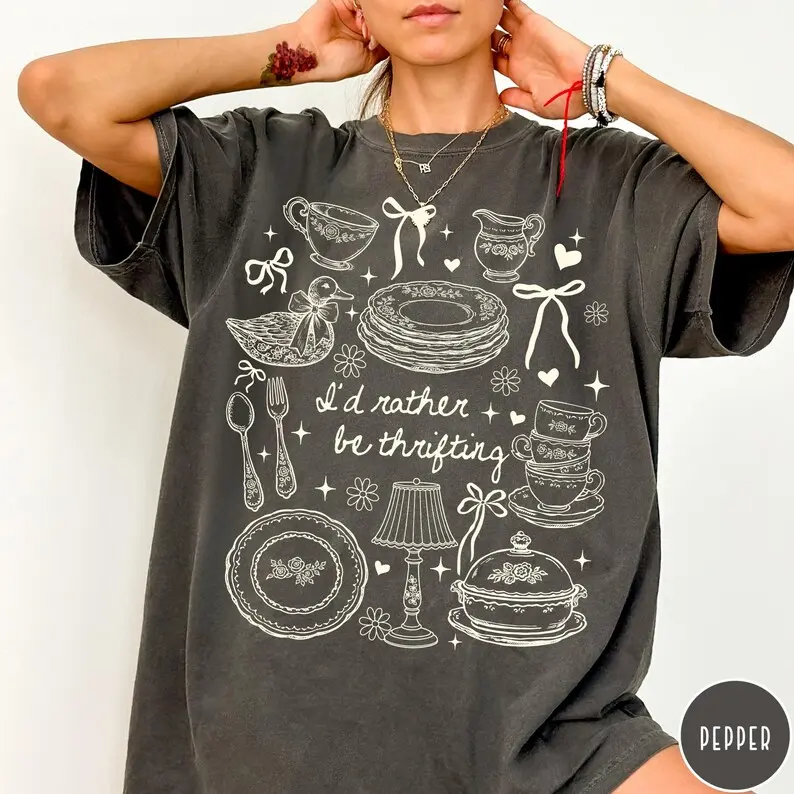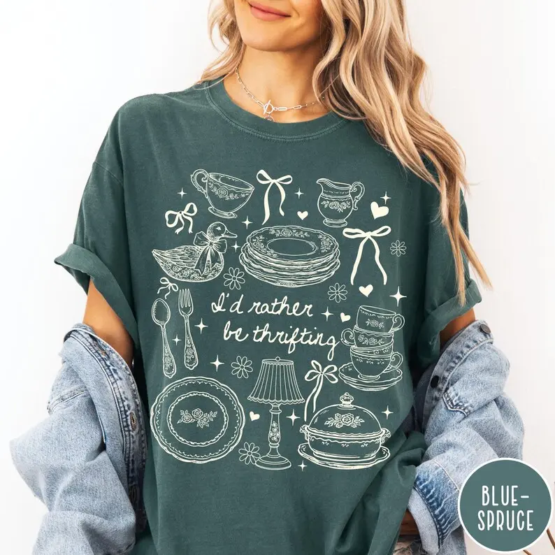 Crafted on the iconic Comfort Colors 1717 garment-dyed silhouette, this piece is the gold standard of "Sustainable-Boutique Luxury." It provides a structured, heavyweight drape that offers maximum durability for every flea market adventure while maintaining an incredibly soft, "already-broken-in" vintage feel. The unique pigment-dye process creates a muted, sun-washed texture that makes the playful thrifting typography look like a hand-pressed find from a secret underground market. For the ultimate Oversized and effortless "Thrift-Queen" look, we recommend sizing up 1-2 sizes and pairing it with baggy vintage denim and a canvas tote for a 10/10 "Second-Hand-Style" vibe.
