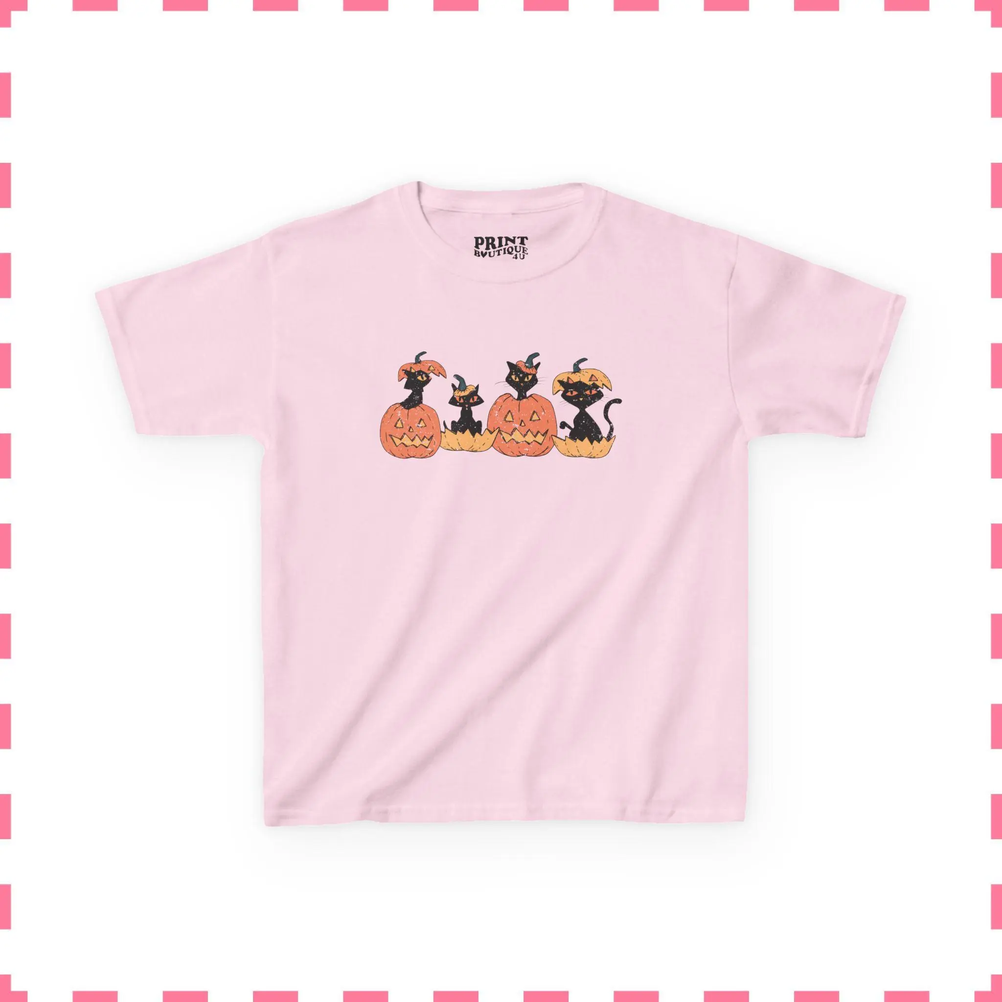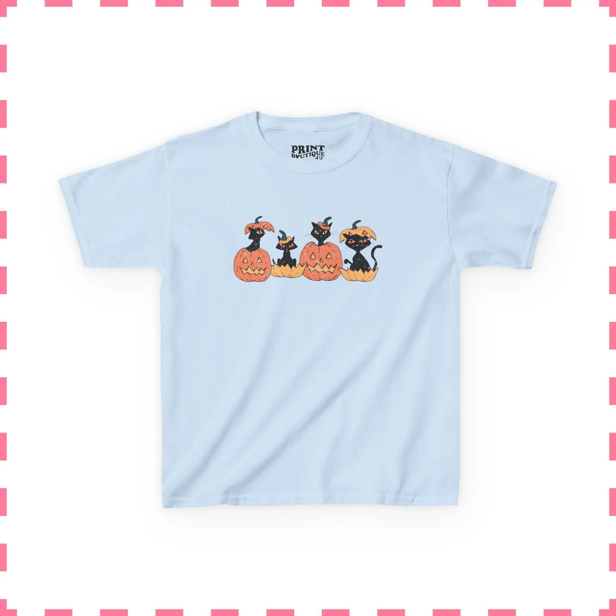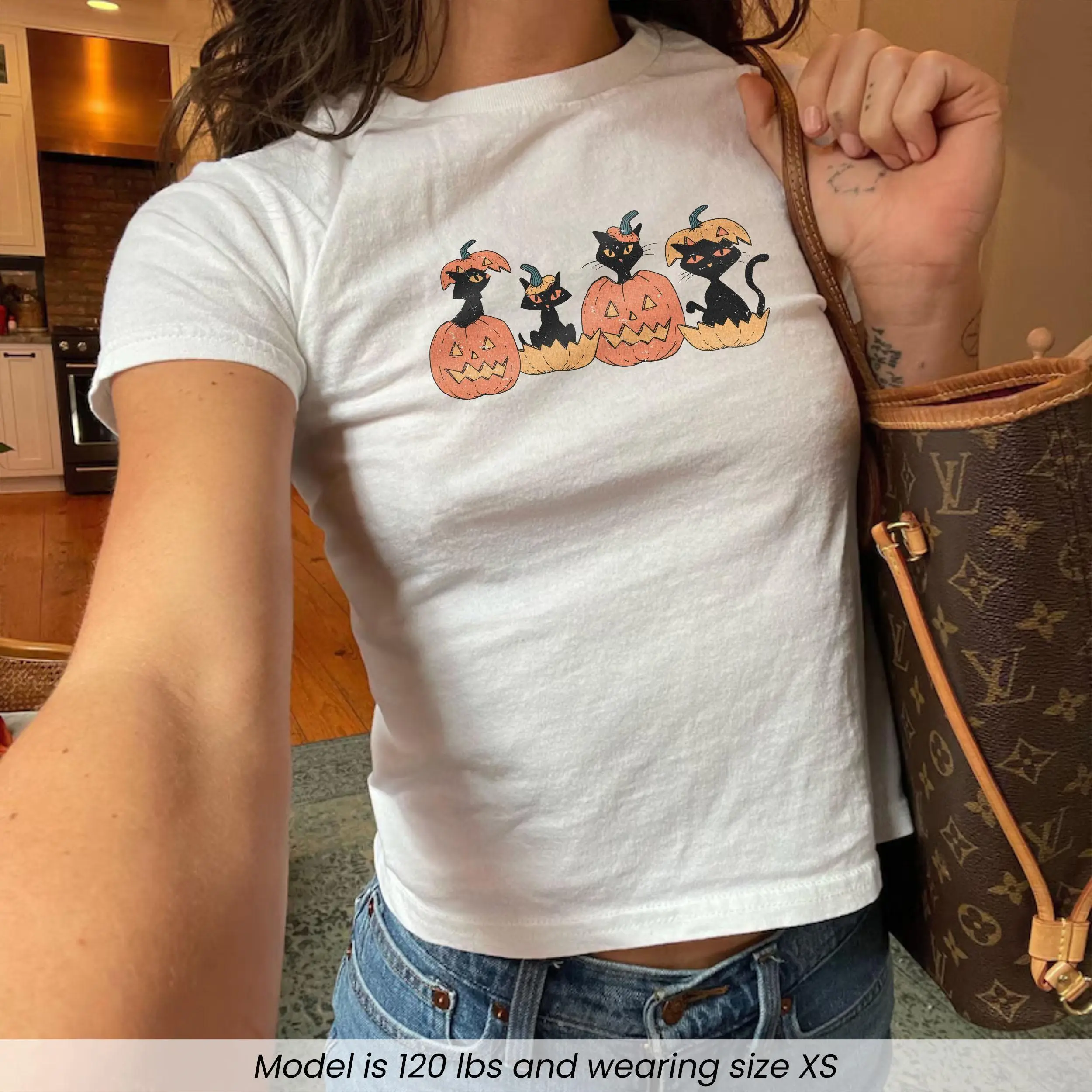 Halloween Cats Pumpkin Baby Tee Cute Halloween Party Graphic Shirt Fall Season Y2k Cropped Top Baby Tee For Her
