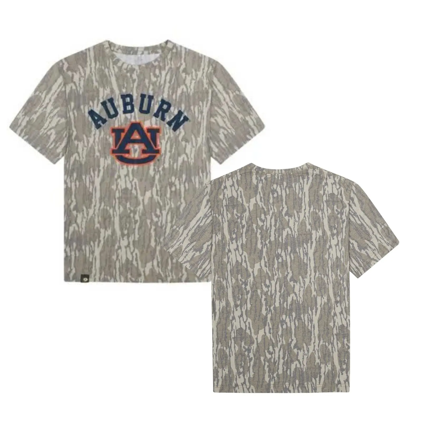 Unisex AU Logo Designed On Original Bottomland Pattern Tshirt, Mossy Oak Vintage Auburn Bottomland Camouflage Camo Tee