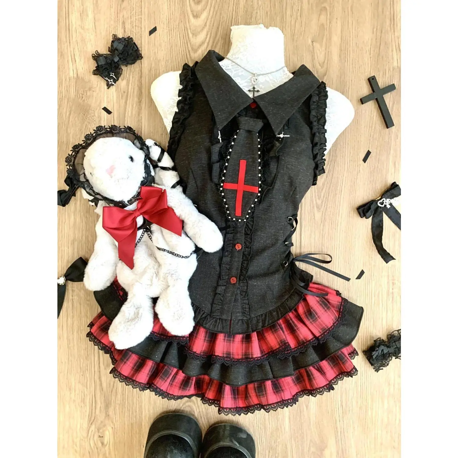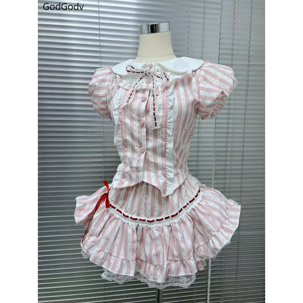 Black Gothic Vintage Elegant 2 Piece Sets Women Sexy Lolita Design Mini Skirt Suit Female Princess Chic Outfits Halloween