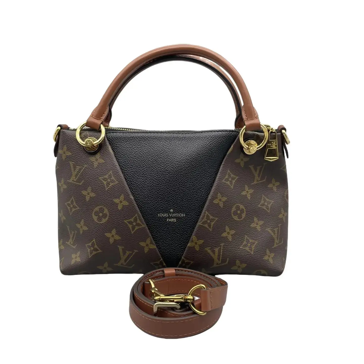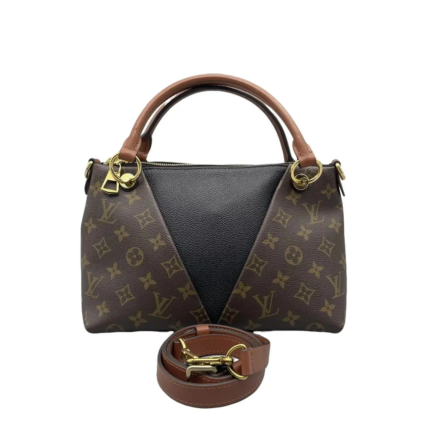 Pre-owned Louis Vuitton LEATHER Crossbody Bags LV Tote BB Monogram Canvas with Black Grained and Tan Handles