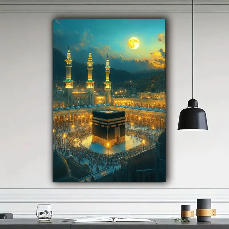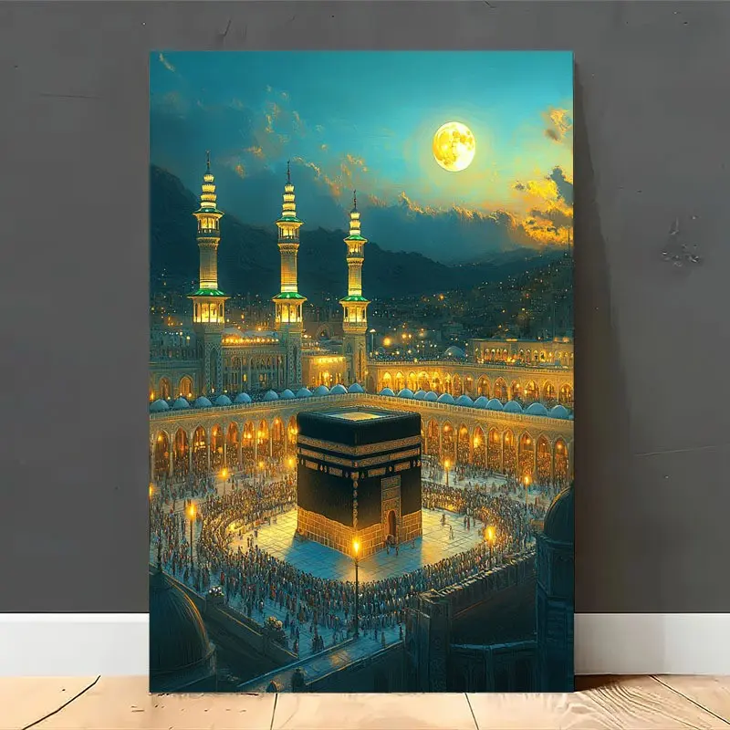 Islamic Mosque Mecca Kaba Night Scene Wall Art, Home Decor for Living Room, Bedroom, Office, Muslim Gift, Religious Art, HD Print, Modern Spirituality