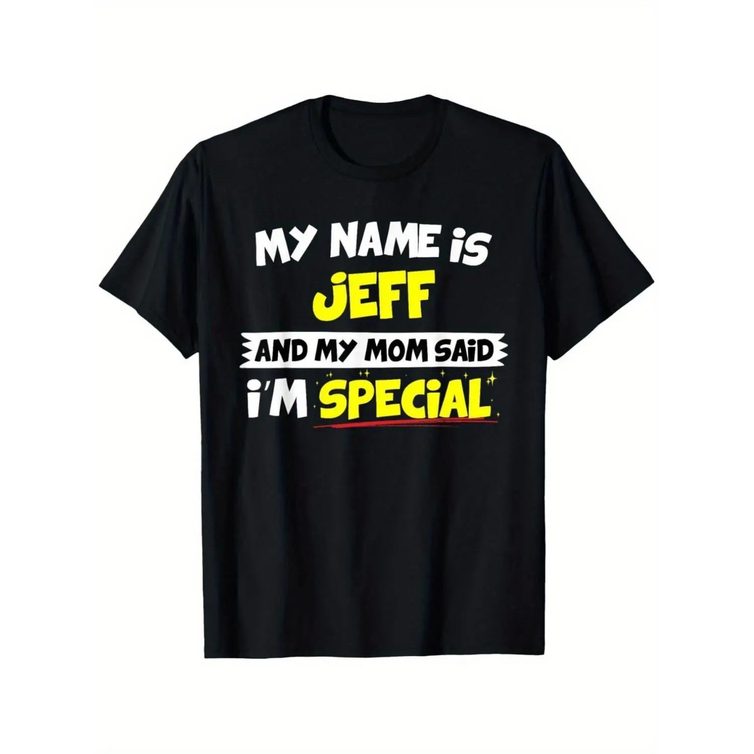 Funny "My Name Is Jeff & My Mom Said I'm Special" T-Shirt - Jeffs Gift, Yellow & Red Text Print Retro Tee, Unisex Casual Wear for Jeff, Year-Round, Humorous Gift Idea 220G