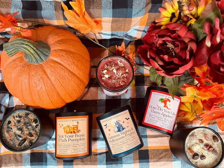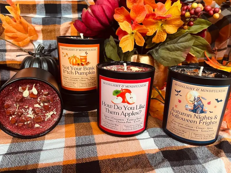 - Autumn Nights & Halloween Frights: Wrap yourself in the smell of autumn as cinnamon, citrus, chrysanthemum, and apple combine with the earthiness of pecan, cedar, and sandalwood. This candle will have you feeling like you've stepped outside on a crisp (and frightfully spooky) Halloween night.