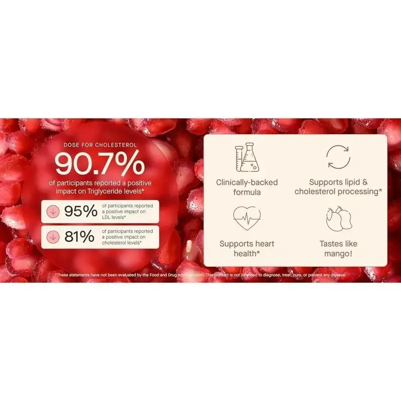 Support your daily heart wellness routine with this convenient 2oz liquid shot, formulated to help maintain cholesterol levels already within a normal range. Crafted with Amla, Curcumin, CoQ10, Pomegranate and Black Pepper, this antioxidant-rich blend fits easily into a balanced lifestyle.