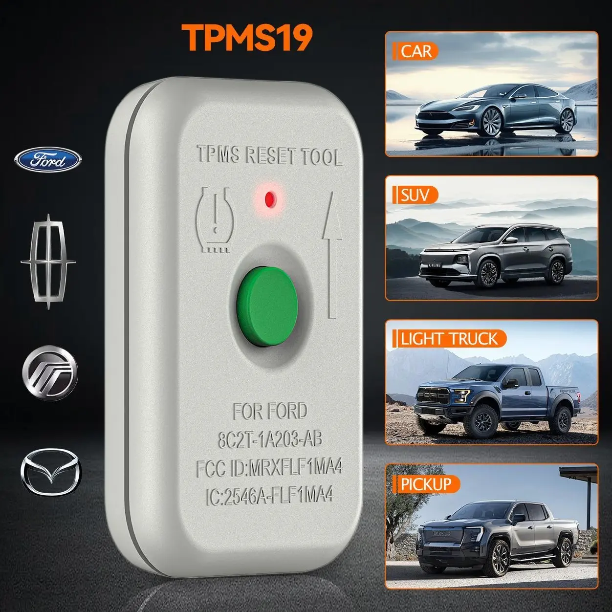 The TPMS19 is specifically engineered to work with Ford, Lincoln, and Mercury vehicles using 315/433 MHz OEM sensors.
