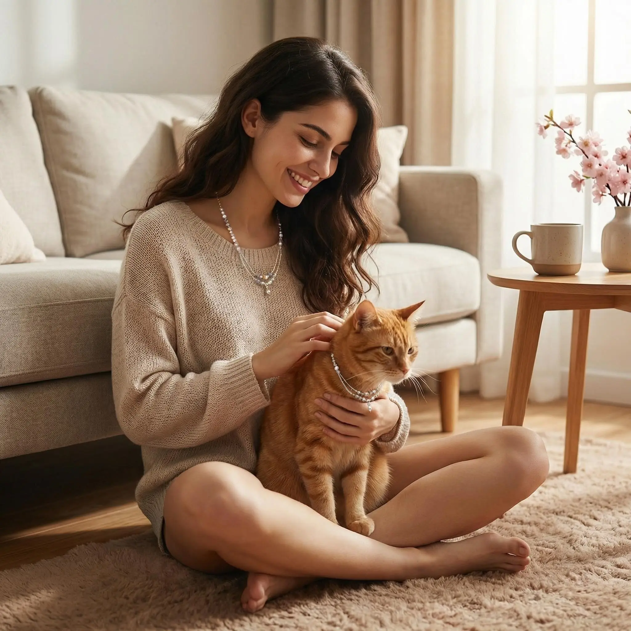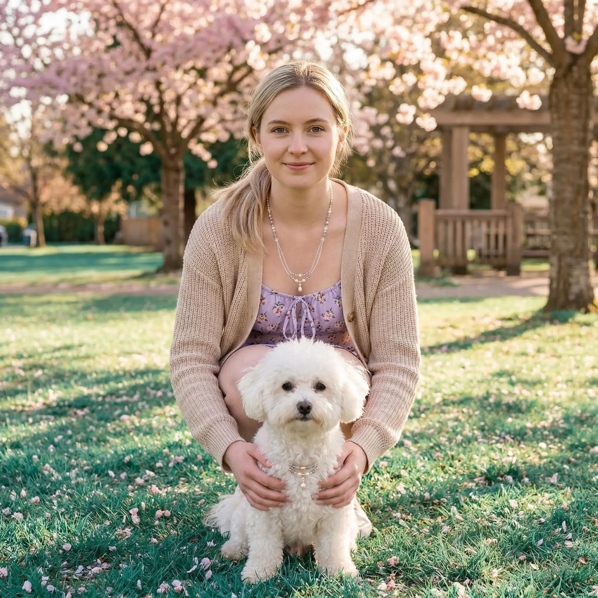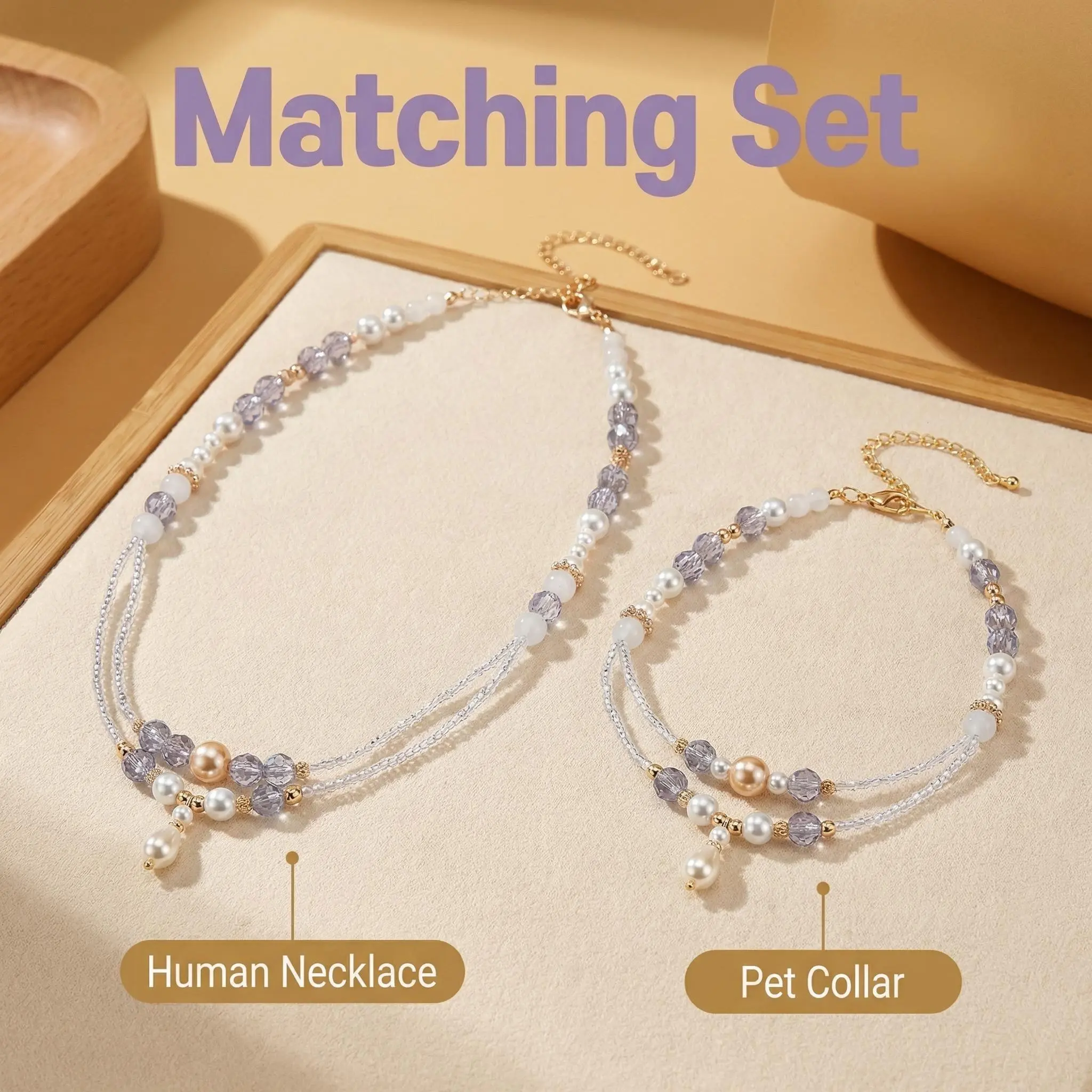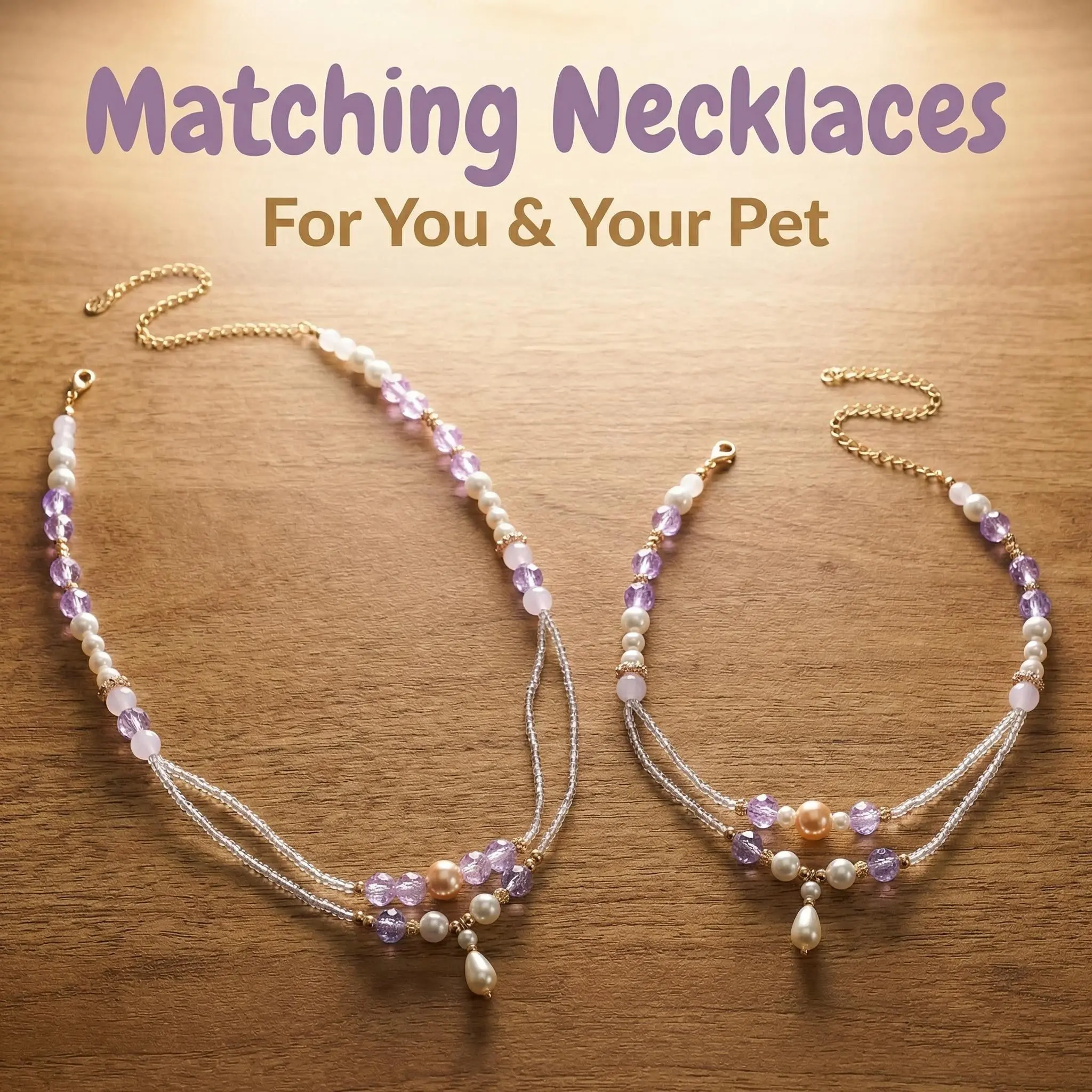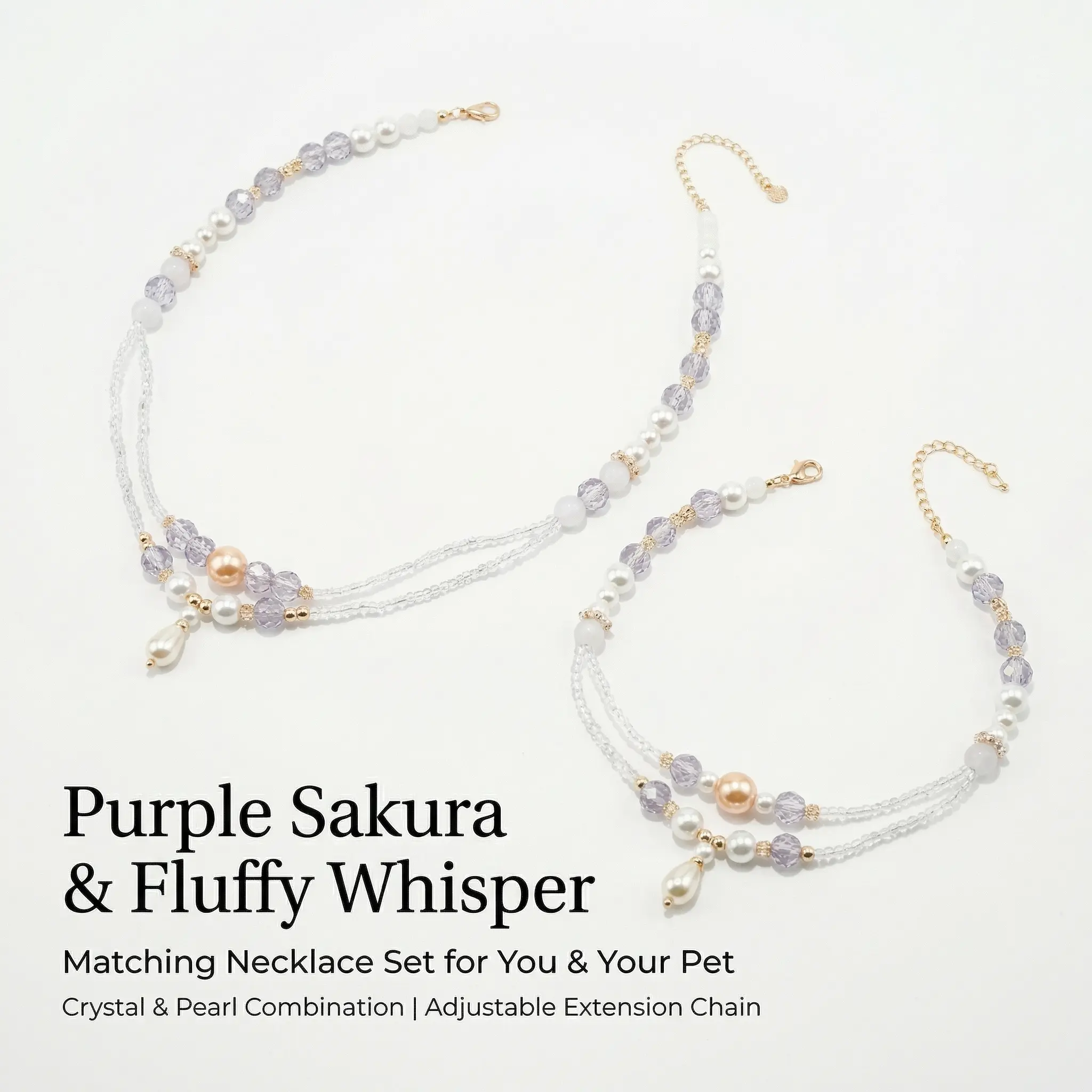 Purple Sakura & Fluffy Whisper Adjustable Pearl Necklace for Owner and Pet Wear