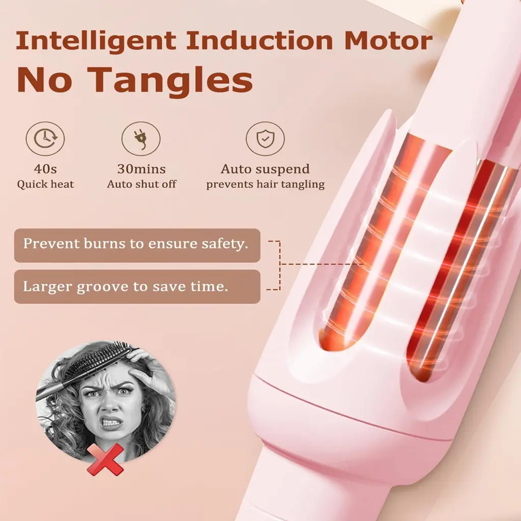 Just clip a section of hair into the curler, press the button, and let it do the work! The rotating barrel wraps hair evenly for consistent, bouncy curls every single time—total beginner-friendly magic.