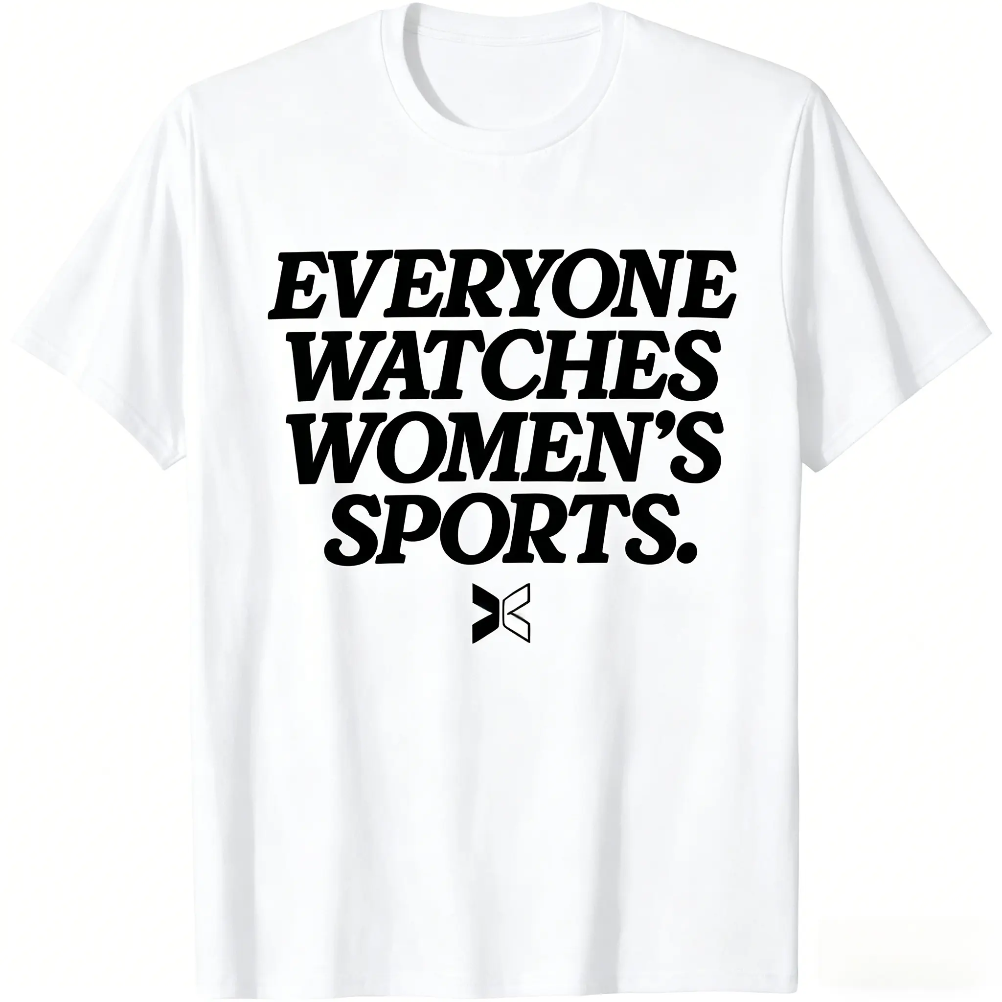 5. 100% Cotton Short Sleeve Everyone Watches Women's Sports Graphic Tee, Supportive Statement Print Casual Top, Soft Breathable Fabric, Loose Fit for Daily Wear, Street Style, Sports Lover Shirt for Men Women