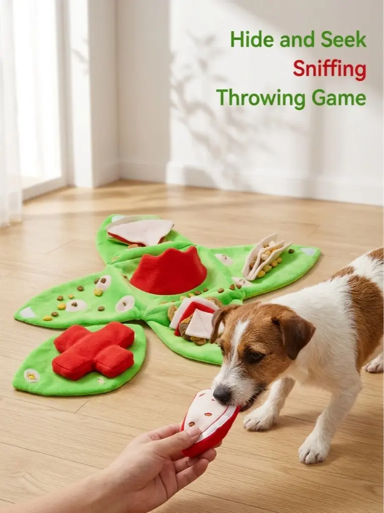 You can also hide small treats or kibble inside the slices and snack mat, turning playtime into a fun food puzzle. This hide-and-seek design stimulates your pet’s natural foraging instincts, relieves boredom, reduces anxiety, and helps prevent destructive chewing behavior.