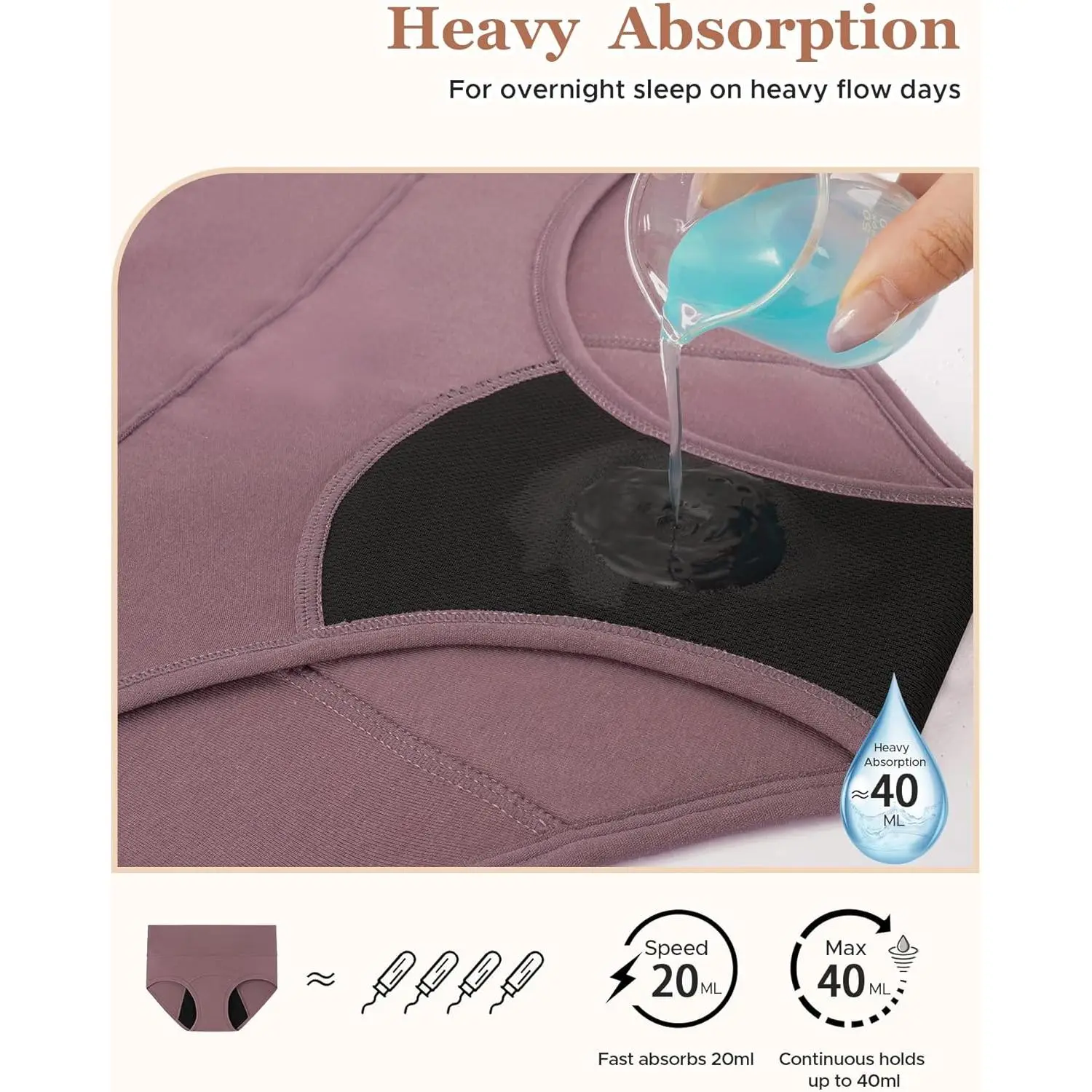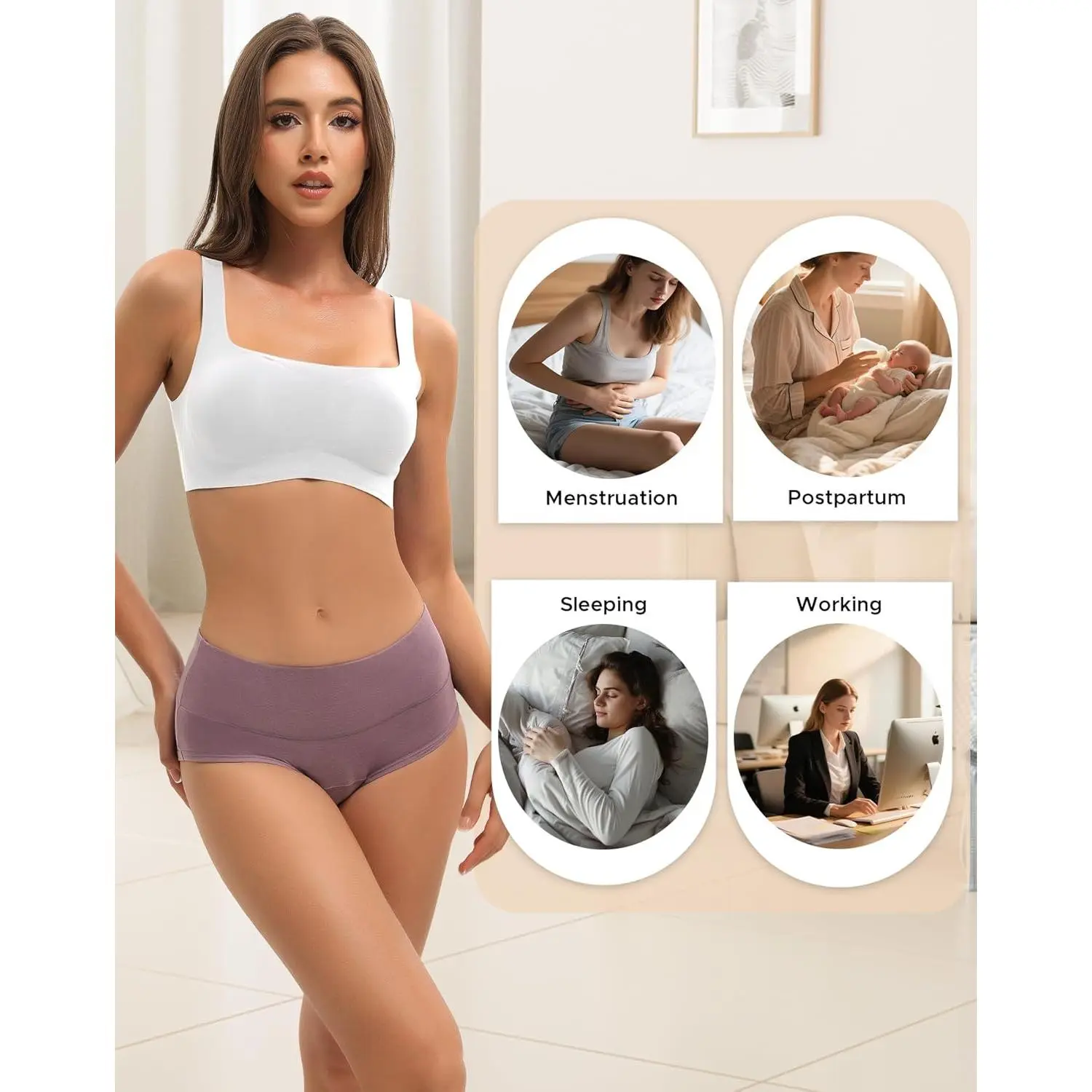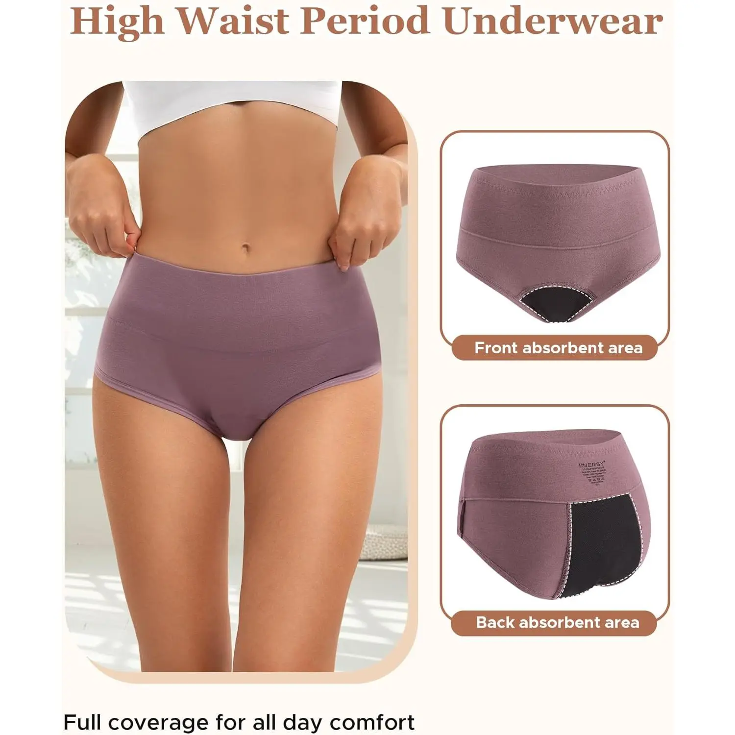 Period Underwear for Women Heavy Flow High Waisted Menstrual Incontinence Panties 3-Pack(Deep Elegance,Large)