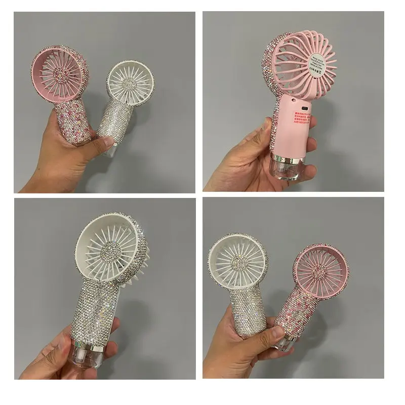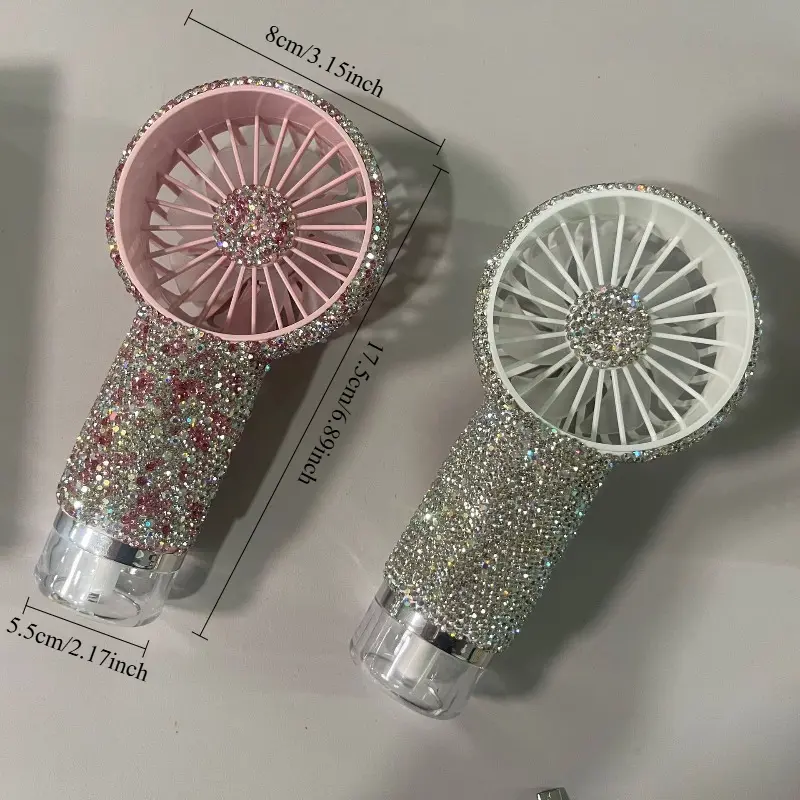 Rechargeable Mini Spray Fan—a portable, diamond-shaped handheld fan featuring long-lasting battery life. Ideal for weddings, outdoor activities, office desktops, and travel; it also makes a delightful gift for Valentine's Day and Mother's Day.