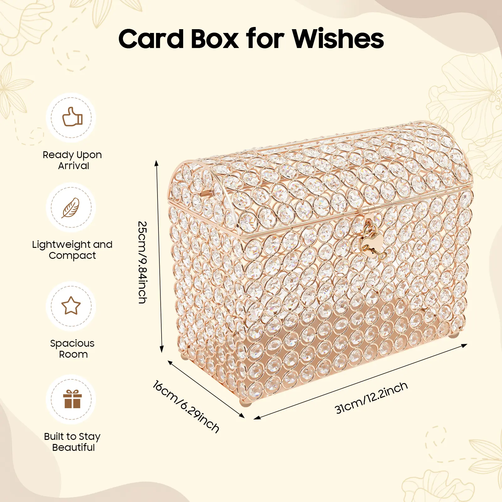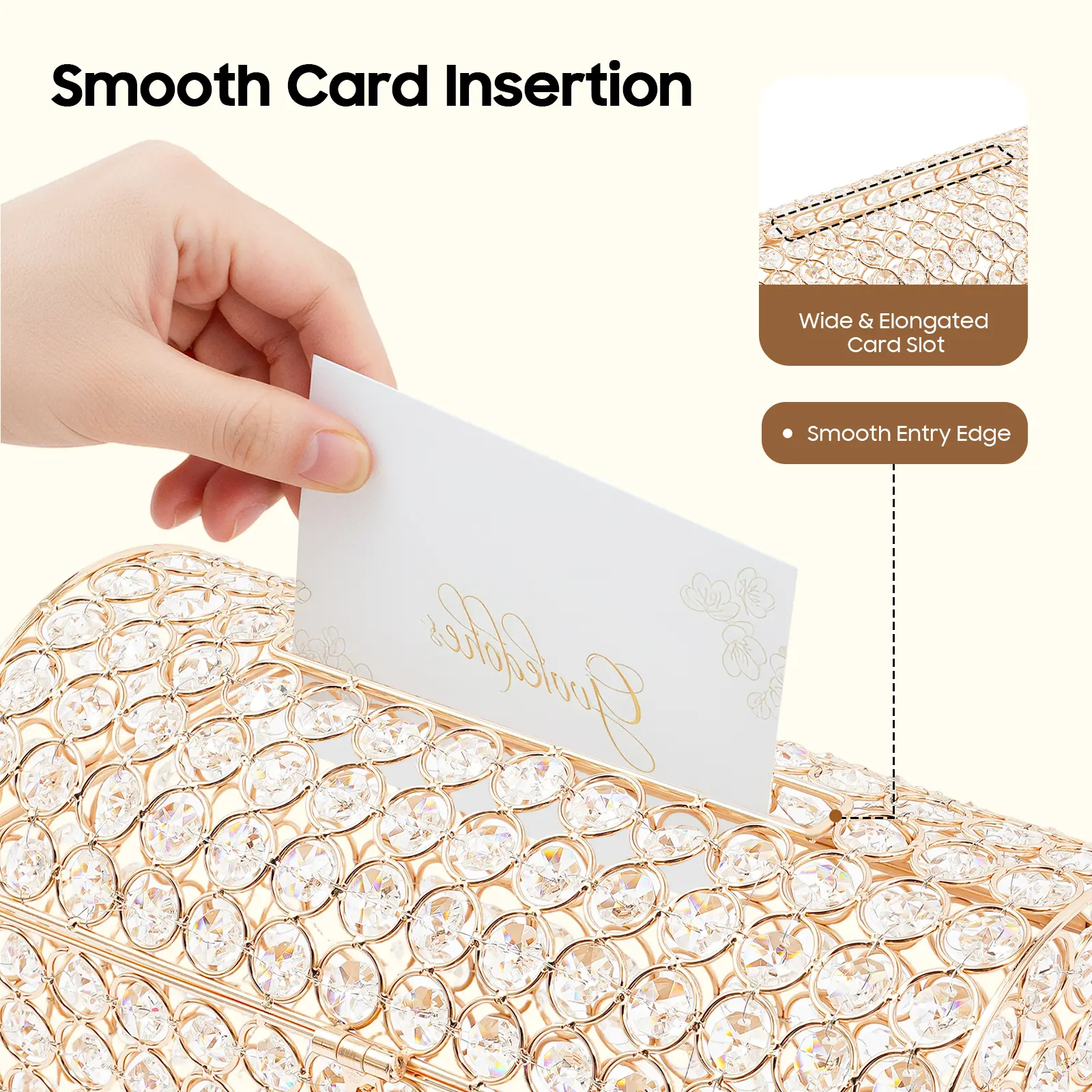 Make every celebration more memorable with this stunning transparent card box. Whether you're collecting wedding cards, saving honeymoon funds, gathering donations, or storing treasured memories, this lockable box adds a touch of sophistication to any table. The clear glass and electroplated metal frame let you see the growing collection inside while keeping contents secure with the included lock and key.