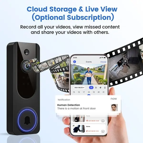 Protect your home smarter with this wireless smart video doorbell, featuring real-time monitoring, AI motion detection, and crystal-clear 1080P video—all from your phone.