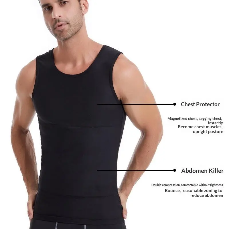 Men Compression Tank Top | Tummy Control, Gynecomastia Shaper, Posture Correction Seamless Undershirt for Gym, Business & Dating Menswear
