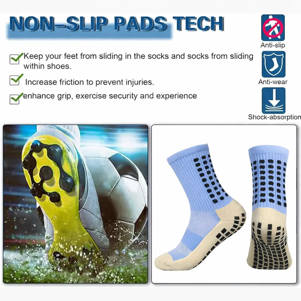 STANDWAY Soccer Non Skid Ball 2 Pairs Football Socks For Men & Womem - Football Basketball Sports