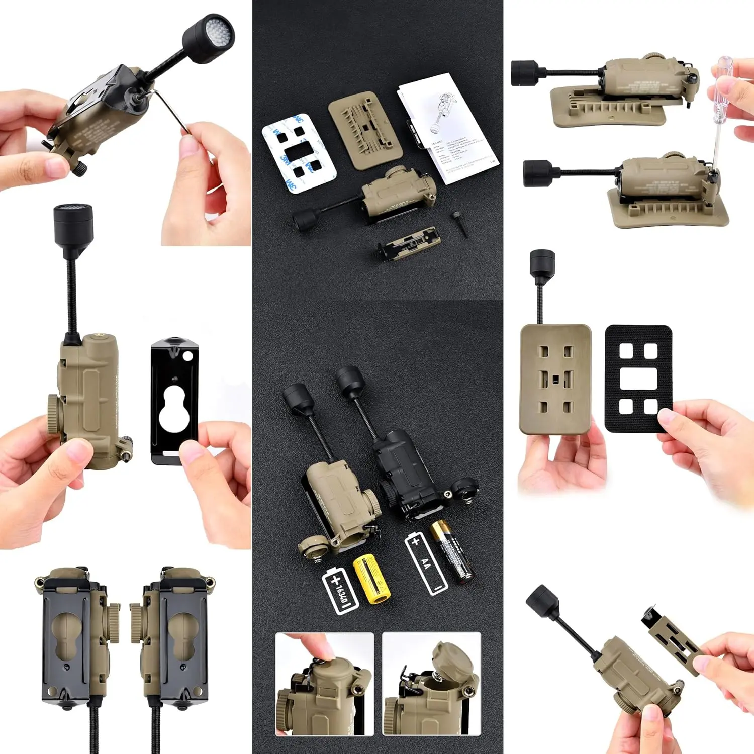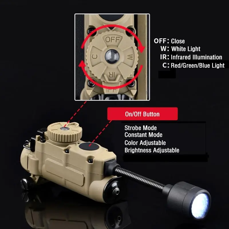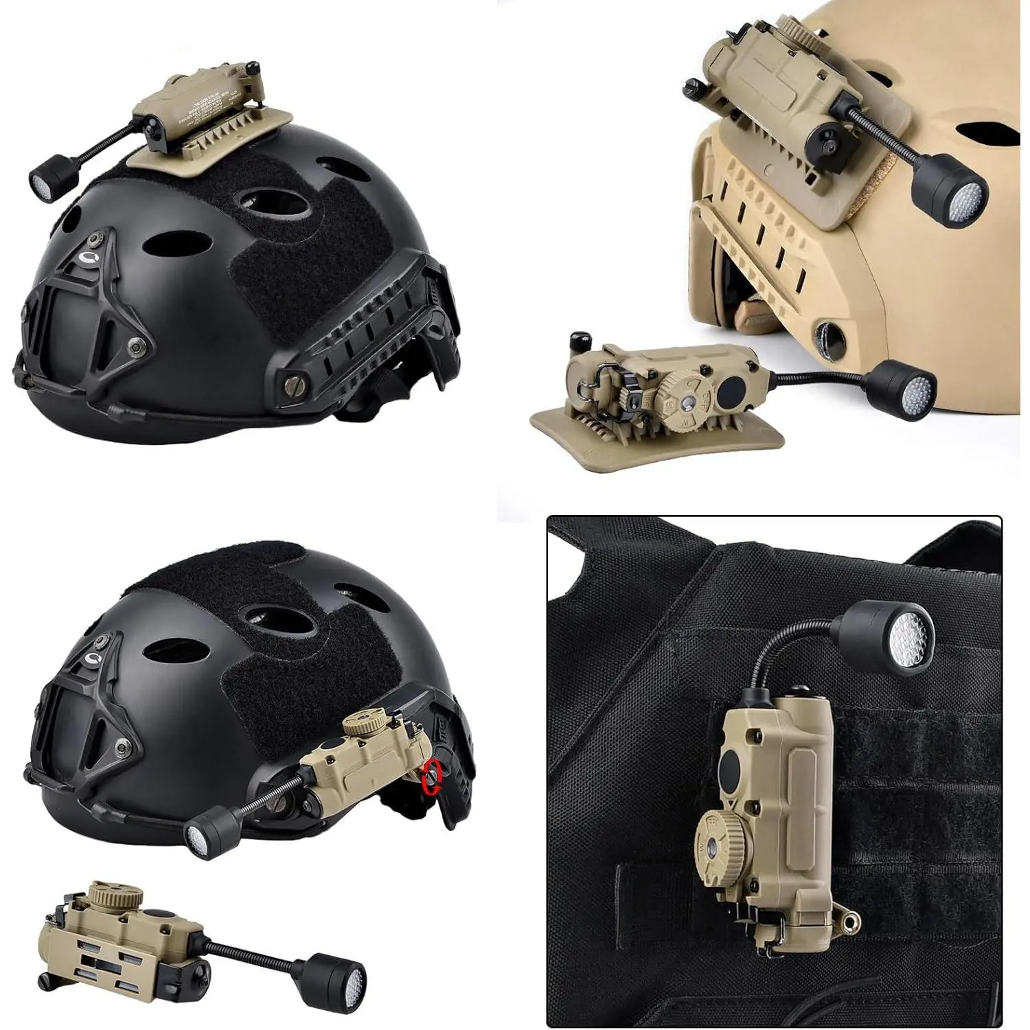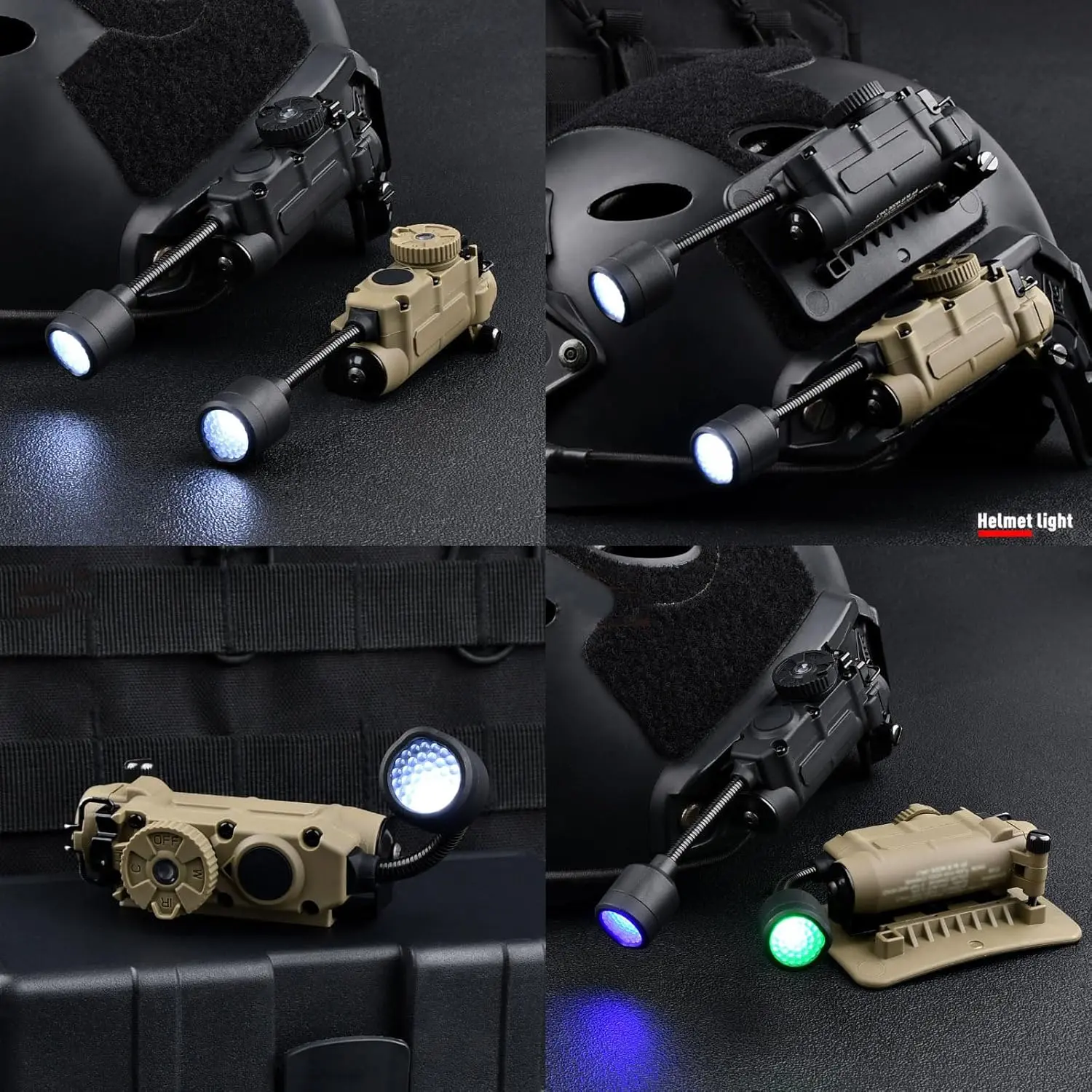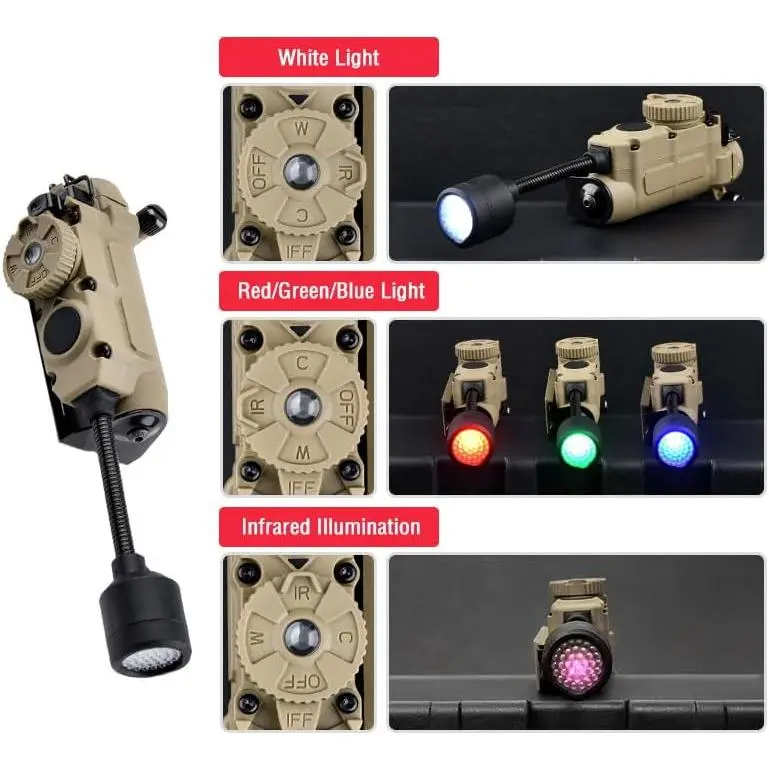 5 in 1 Outdoor Helmet Light with Mount,Red/Green/Blue/White/IR LED Task Signal Light,Include ARC Guide Rails,Webbing Clips,Magic Stickers,Fits for Helmet & MOLLE Belt System Mounting