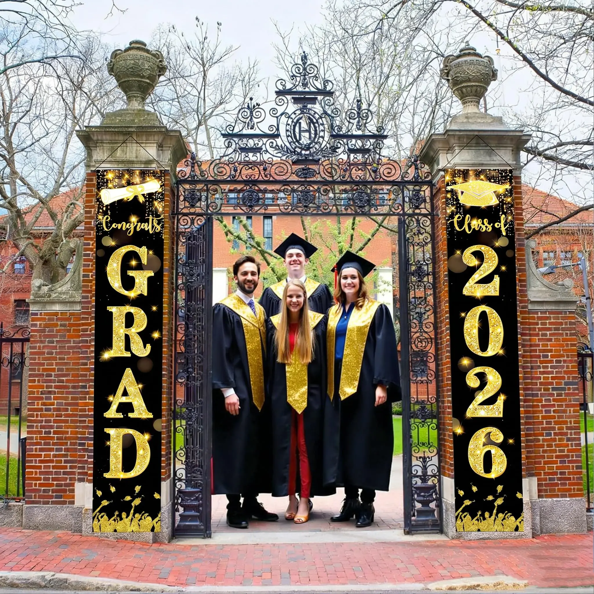 Made of sturdy polyester with clean, neat edges to prevent rips and tears. Weather-resistant, fade-proof, easy to store, and can be reused for future graduates.