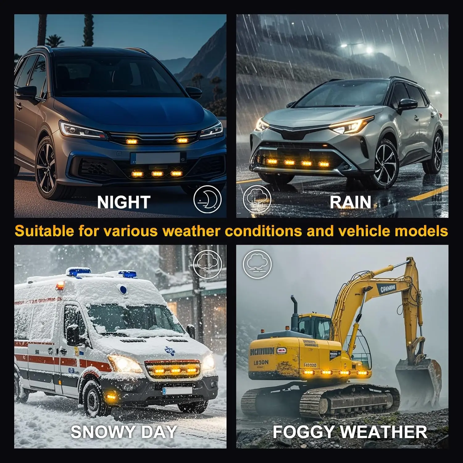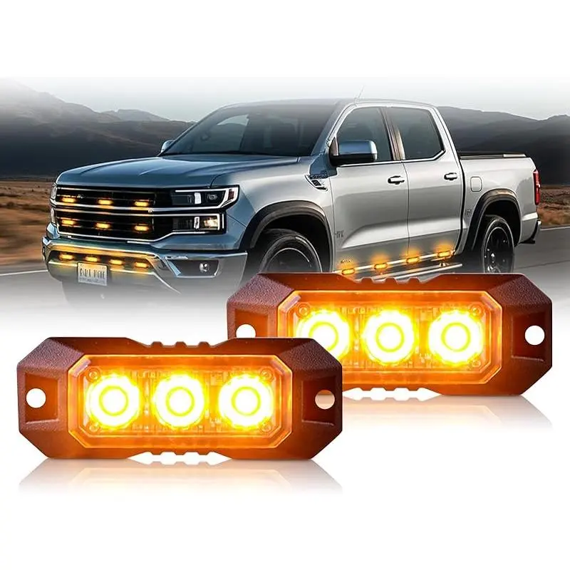 ·Package includes: 4PCS Amber LED Strobe Lights, 4PCS Rubber Mats, 8* Mounting Screws and nuts.