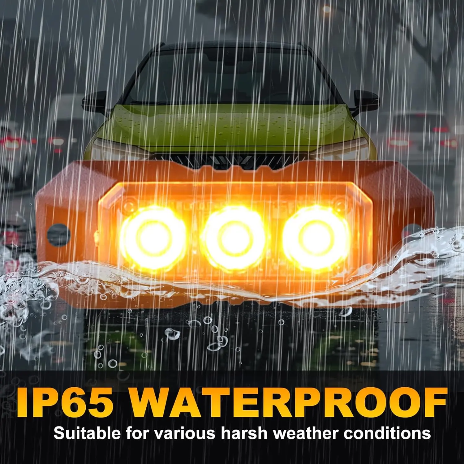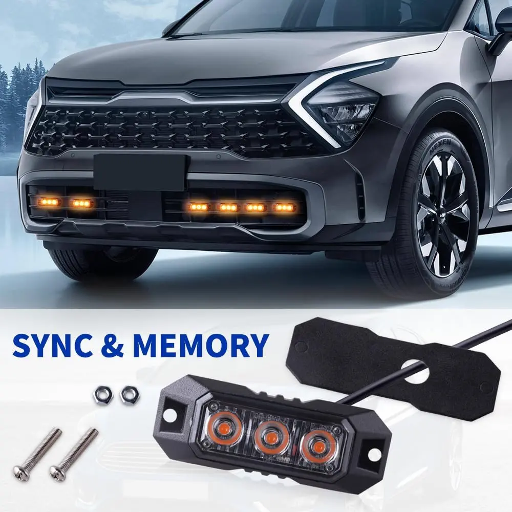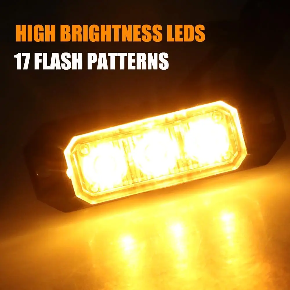 ·Ultra-high brightness: Each Amber Strobe Light is equipped with 3 ultra-bright SMD 3030 LED chips.It offers high-intensity light output and is compatible with 17 flashing modes and synchronization functions.The emergency strobe lights for vehicles supports 2-8 lamp synchronization control.The LED has a lifespan of up to 50,000 hours, ensuring clear and bright visibility both during the day and at night, significantly enhancing vehicle warning effect and road safety.