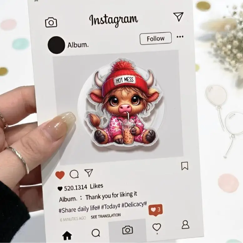 (Red) Hot Mess Phone Grip Magsafe, Lovely Baby Cow With Milk Tea Kindle Grip, Pink Highland Cow Grip Holder, Cartoon Phone Grip, Gift for Girls Boys