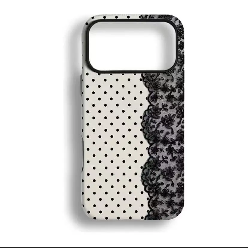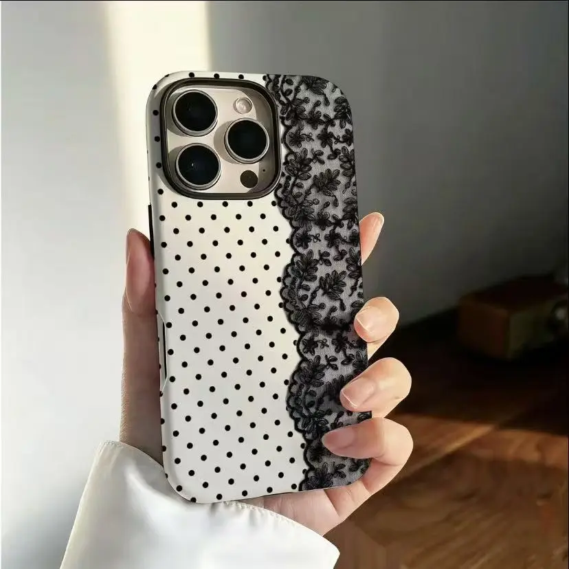 ✨ Elevate your phone's style with this Black Polka Dot Lace Print Phone Case! Perfect for iPhone 17 Pro Max, 16, 15, 14, 13, 12, 11, X Plus/Pro, and Samsung Galaxy. This case offers military-grade shockproof protection, ensuring your device stays safe. Ideal for girls seeking an affordable, tough, and anxiety-free phone case.