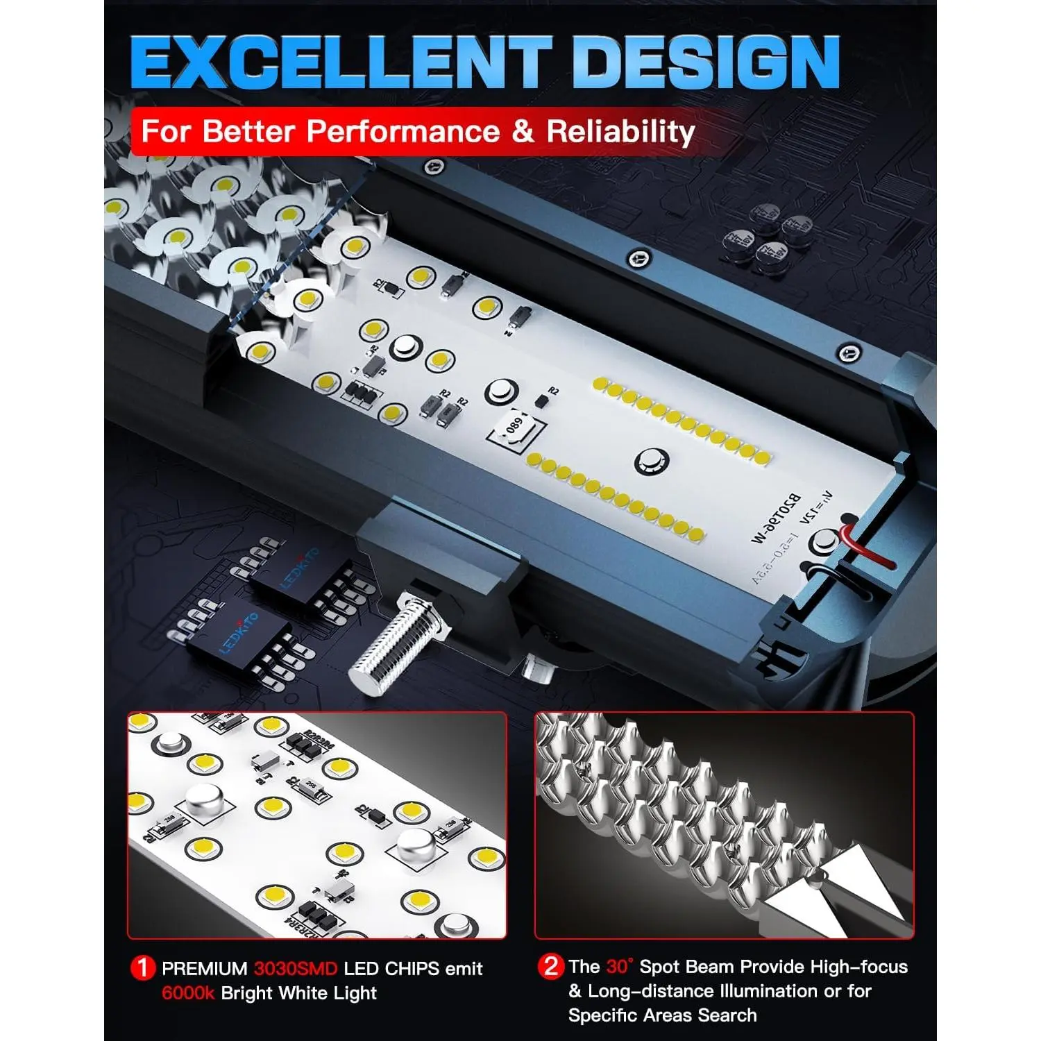 [Waterproof Performance]20inch LED Driving Light Bars have excellent waterproof performance.Adopting multiple waterproof designs such waterproof soft strips, silicone seals, and waterproof rubber pads, the light achieves IP68 waterproof and rustproof, dust-proof, shock-proof, quake-proof.You can use the lights in any harsh environment without worrying about quality problems