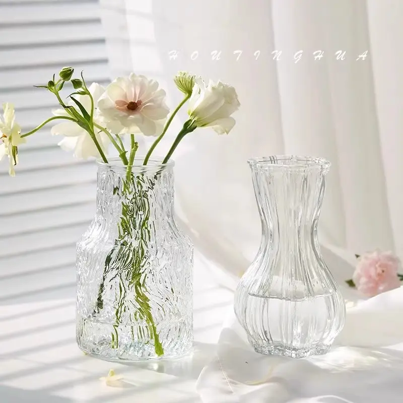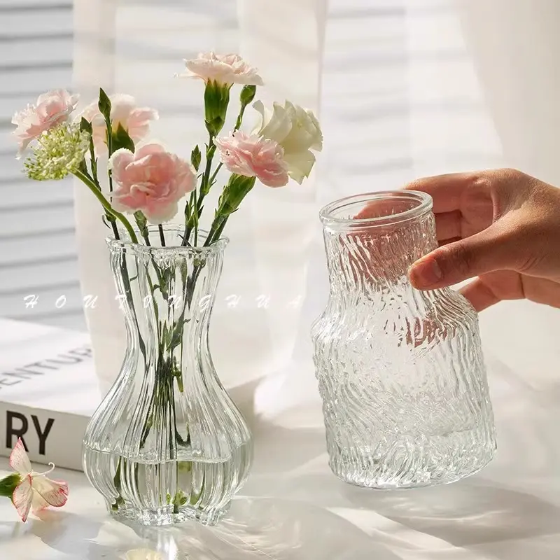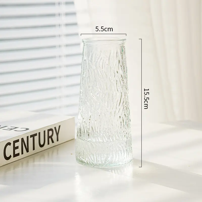 Glacier Pattern Glass Vase, Premium Social Media Style Transparent Flower Holder, Thickened Durable Water Cultivation Container, Living Room Table Rose Fresh Flower Decorative Ornament