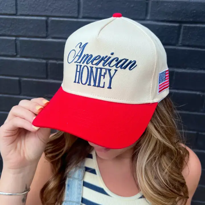 Features a trendy American Honey graphic design that perfectly matches country, western, and retro fashion styles.