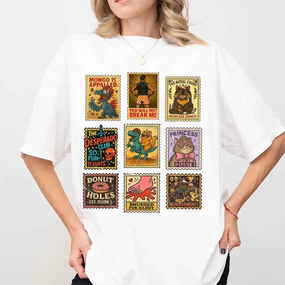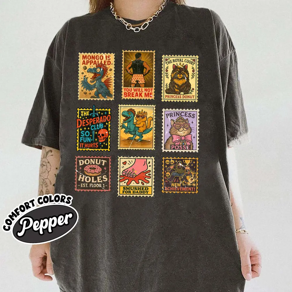 Dungeon Crawler Carl Shirt, Vintage Stamp T-shirt, Sci-Fi Book Lover Tee, The Desperado Club Top, Princess Donut Sweater, New Achievement