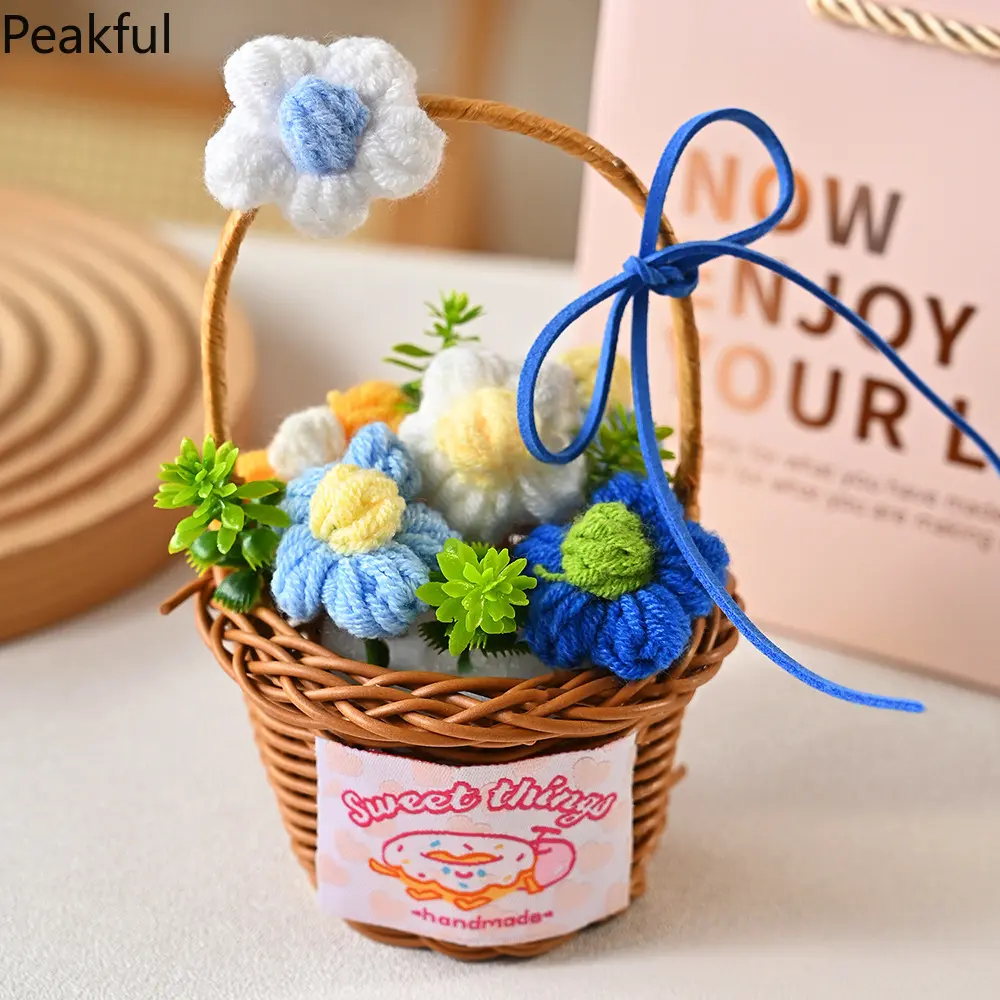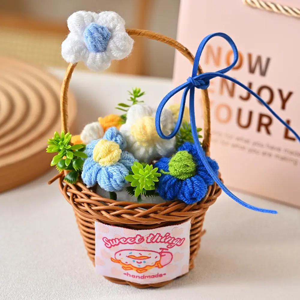 1/2PC Knitted Flower Bouquet – Handmade Crochet Decorative Basket, Beautiful Potted Plants for Home Decor, Perfect Gift for Mother’s Day, Unique & Heartfelt Decorative Accent