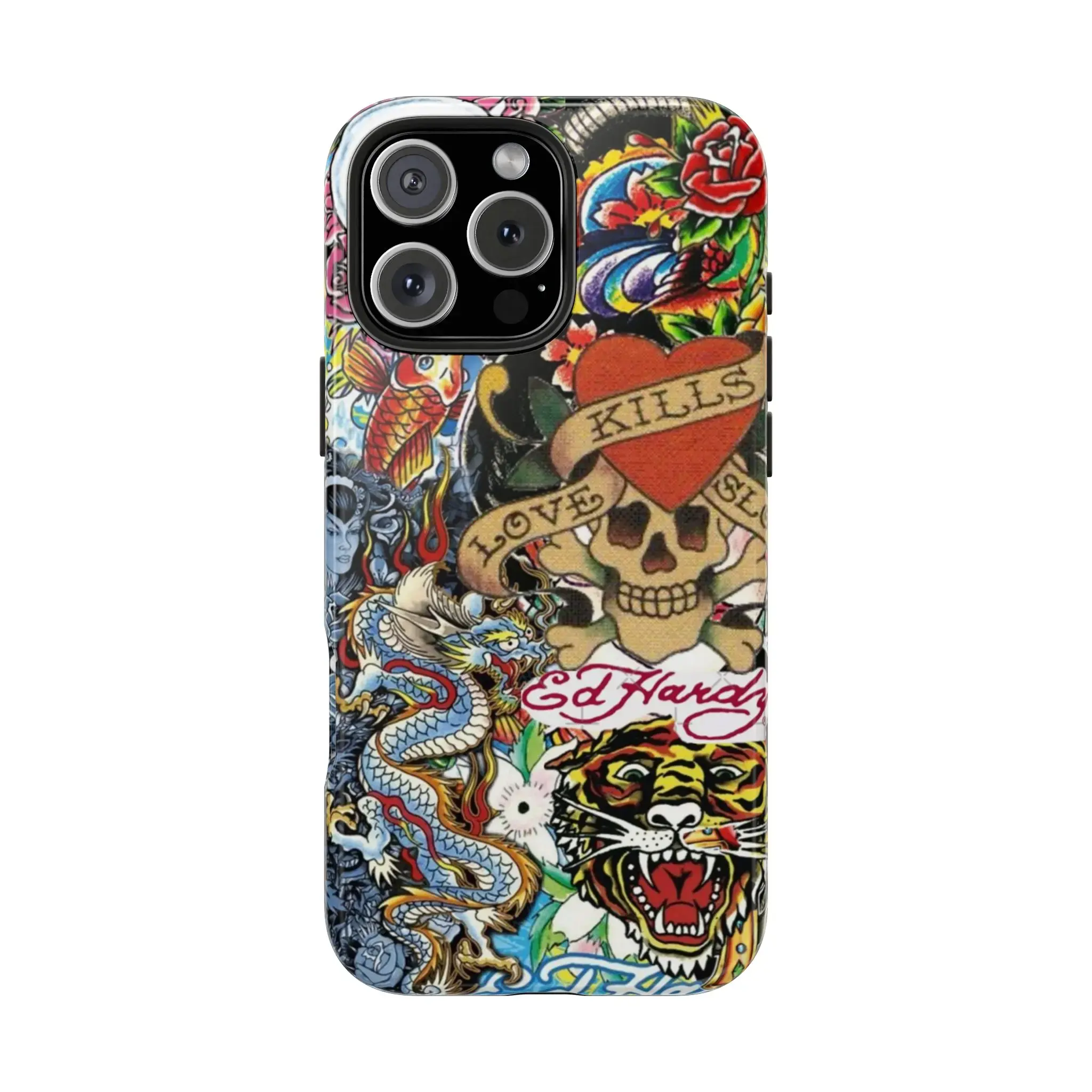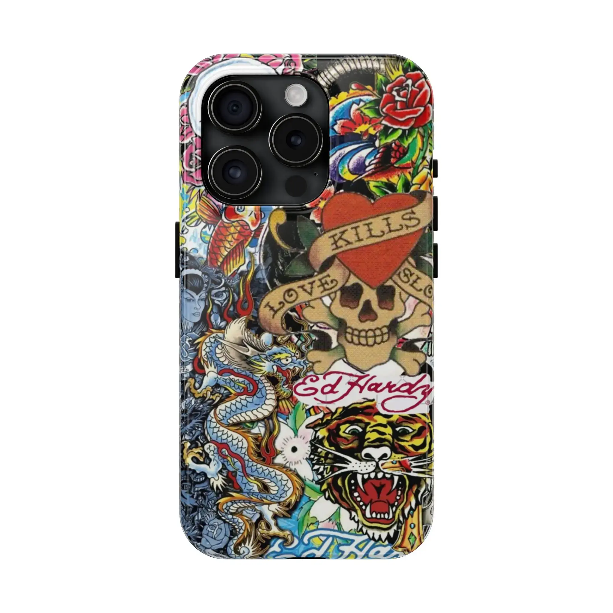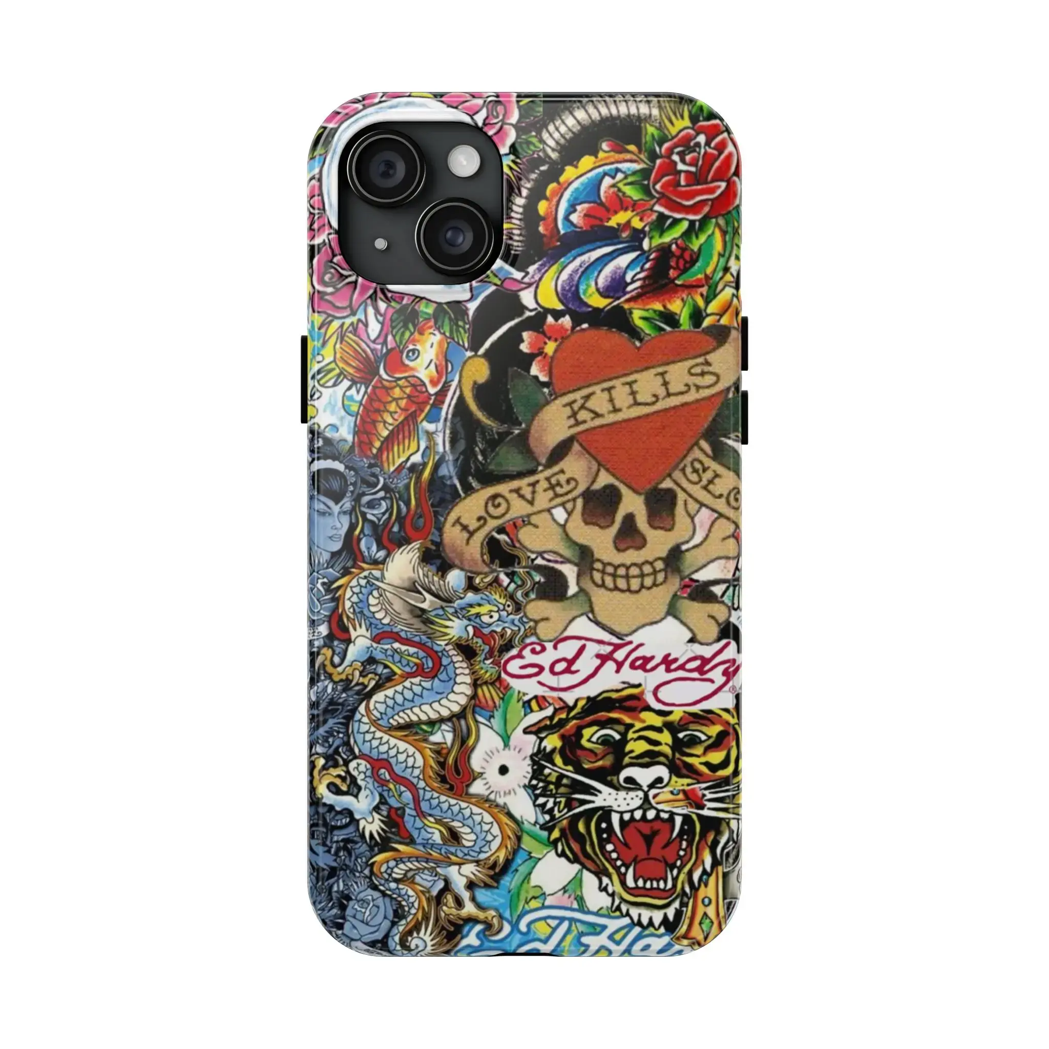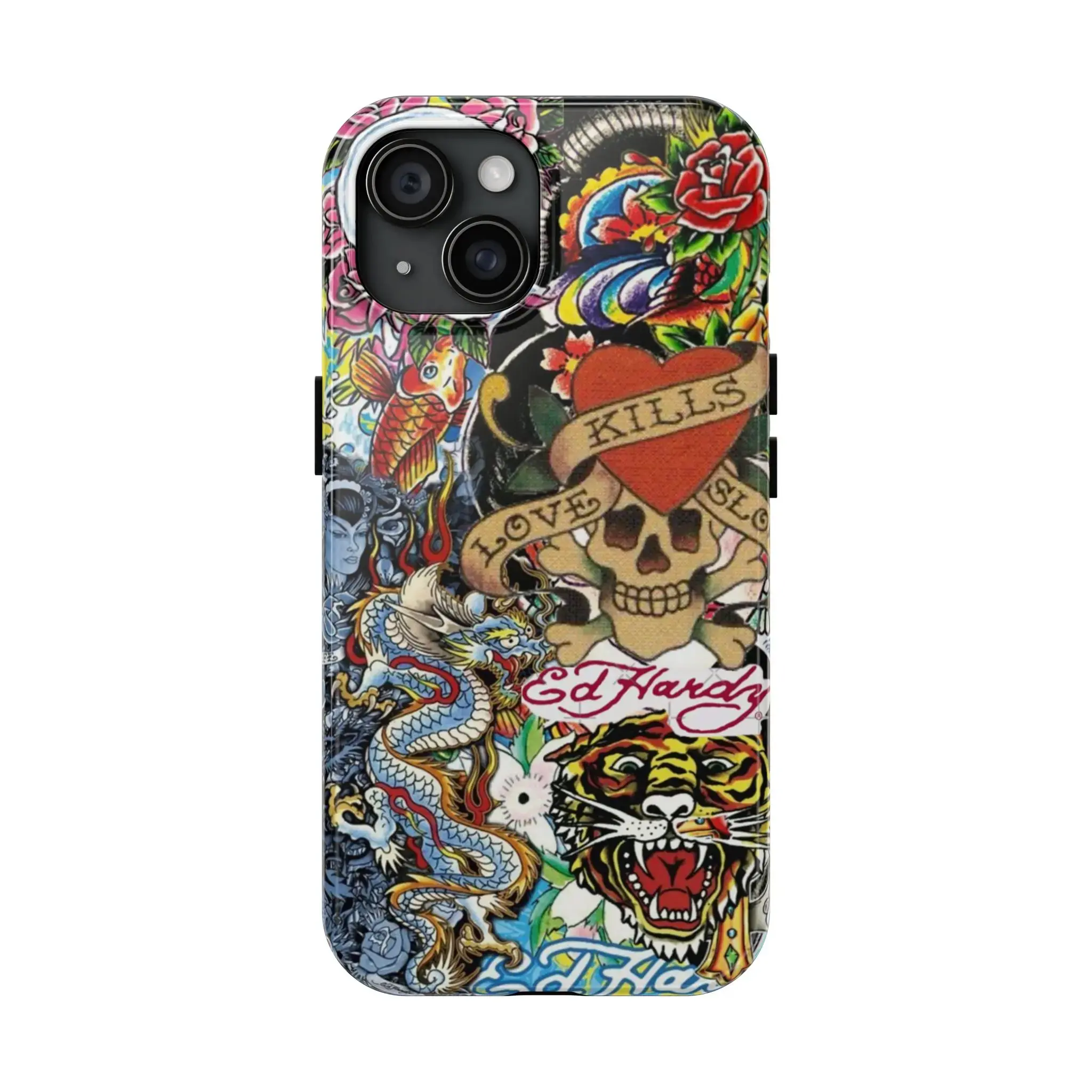5. Ed Hardy Dragon Vintage Phone Case – 2-Piece Tough Cover with Drop & Scratch Protection | Trendy Hard Case for iPhone