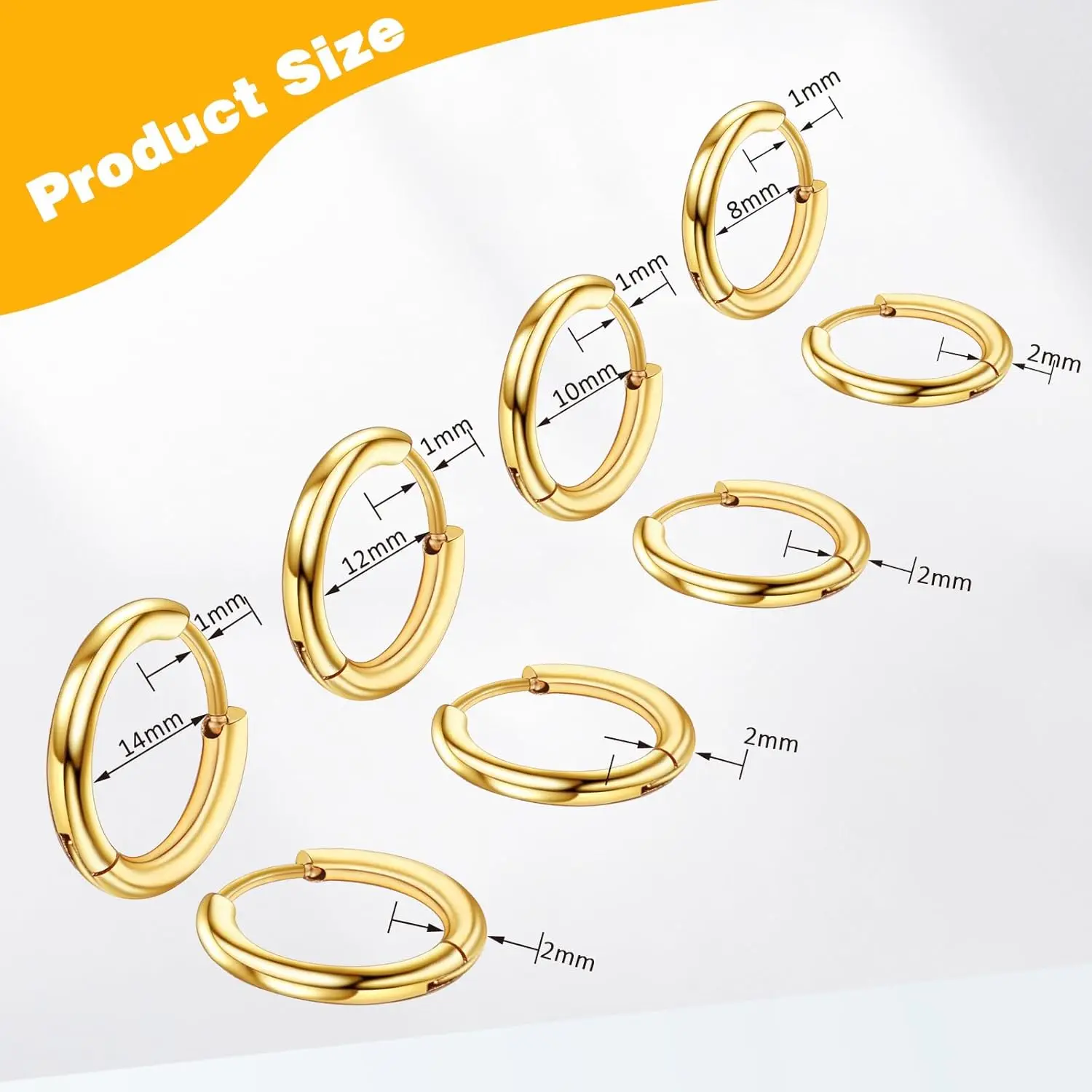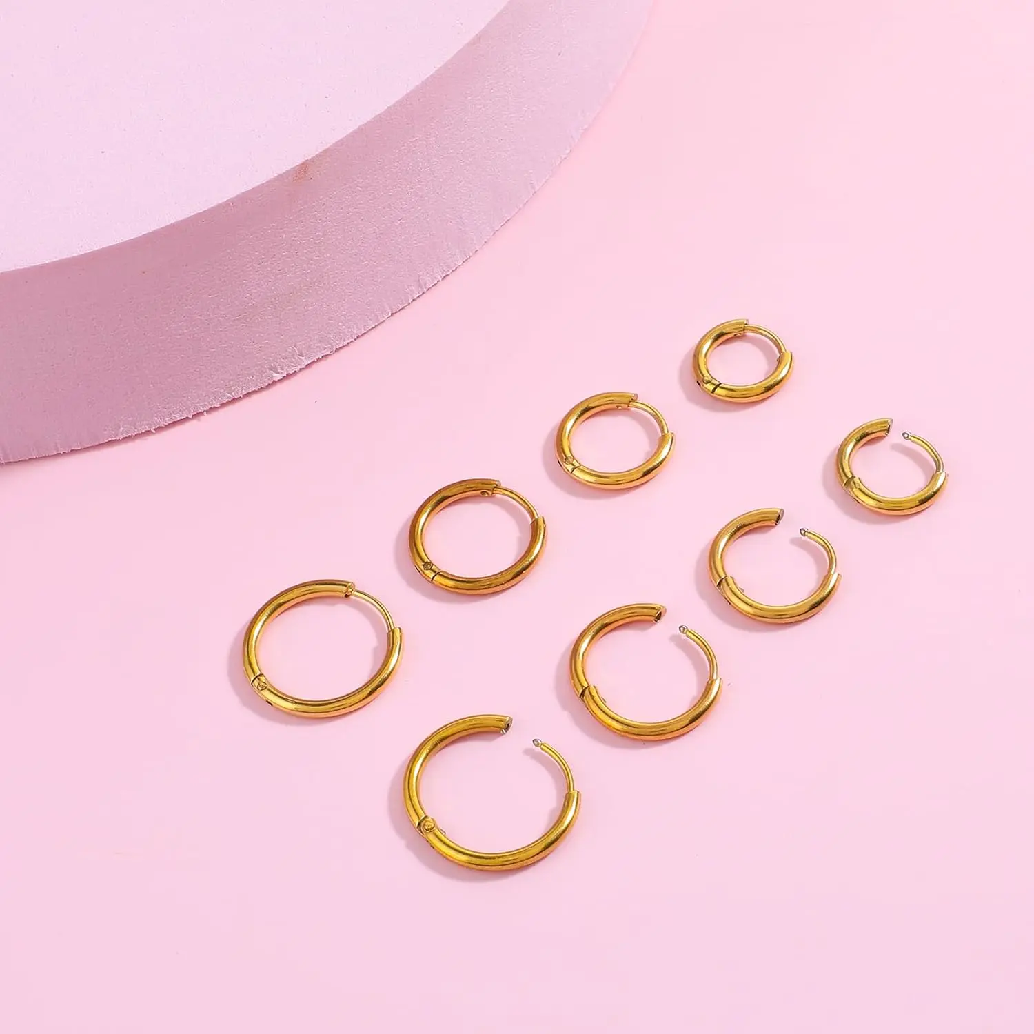 This set includes 4 popular sizes: 8mm / 10mm / 12mm / 14mm, so you can easily match different styles, piercings, and moods. Wear them on your lobe, cartilage, helix, or tragus—one set, endless looks.