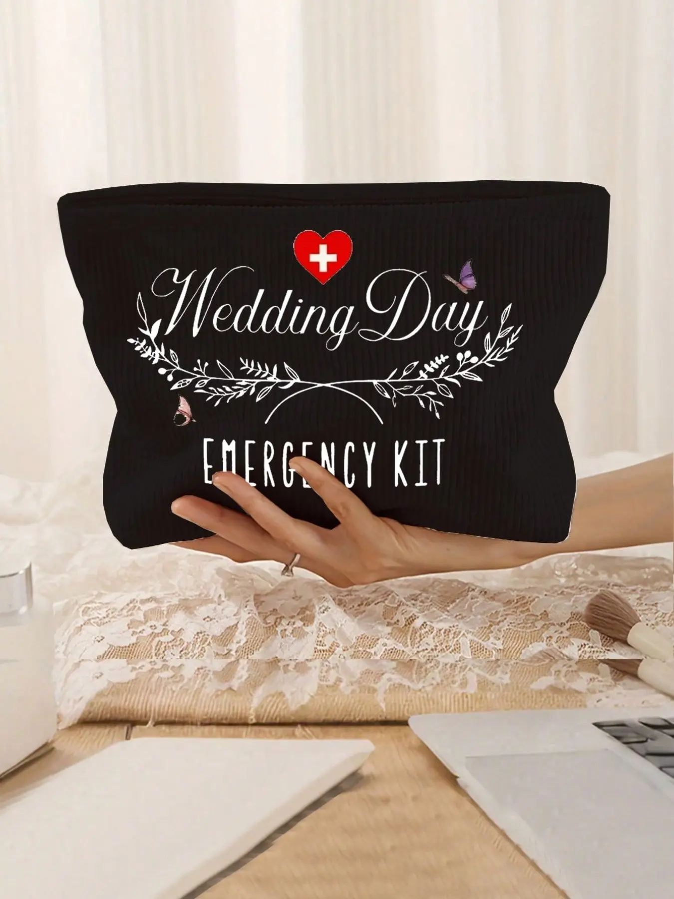 Bride Wedding Emergency Makeup Bag, Personalized Polyester, Lightweight Zippered Organizer, Fade-Resistant, Foldable, Fashion Travel Kit