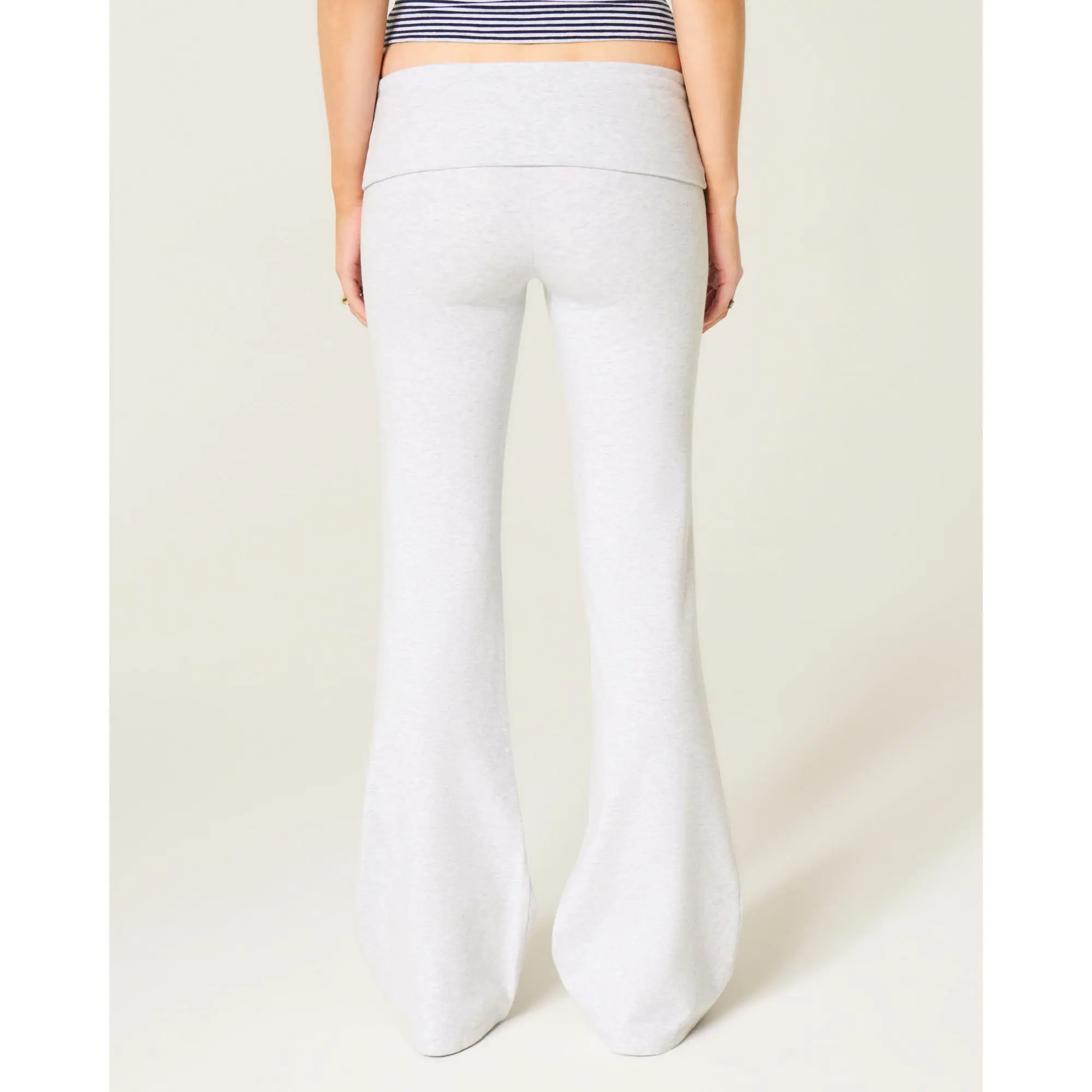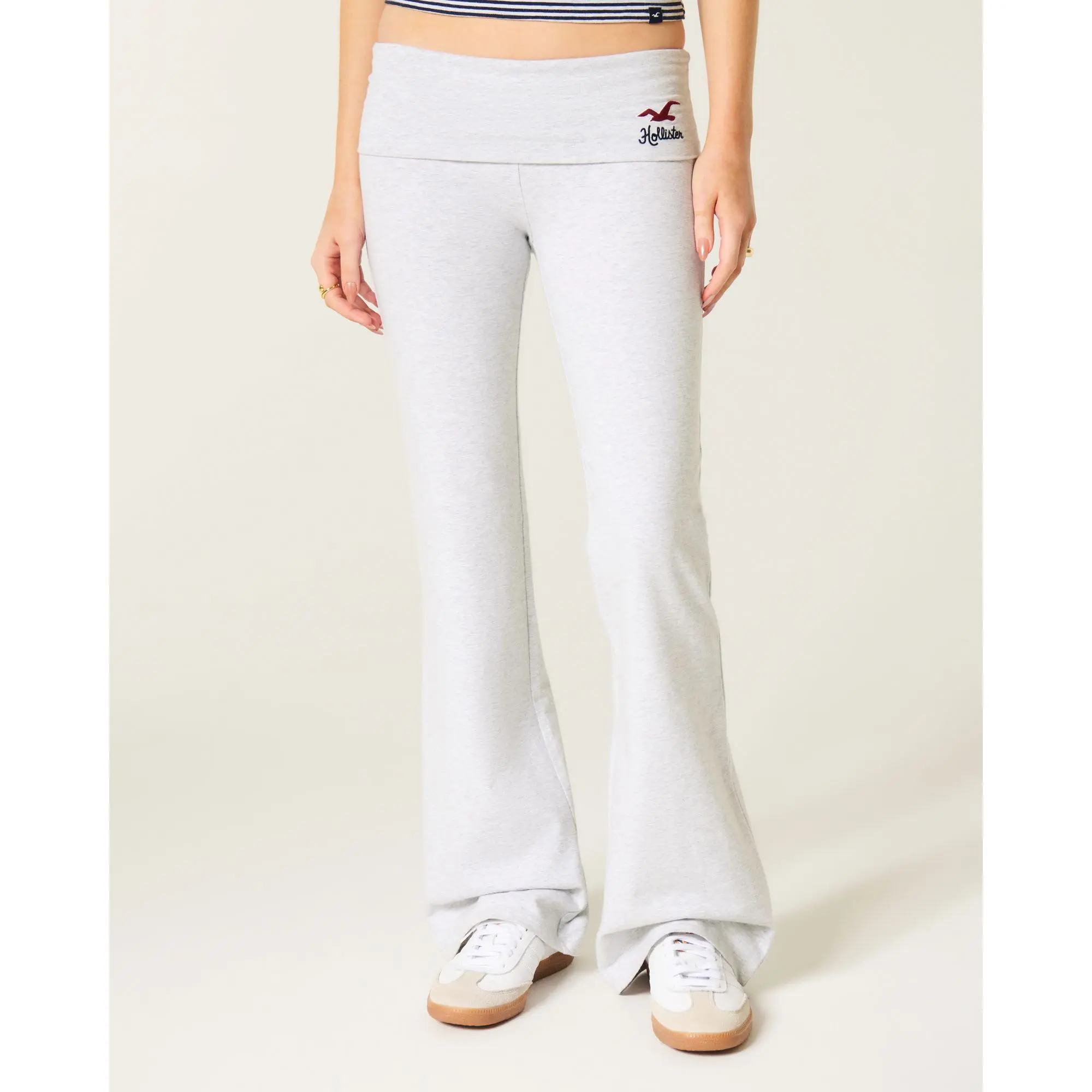 Comfy and super soft knit pants with a foldover waist and flared leg. Embroidered logo detail. Imported.