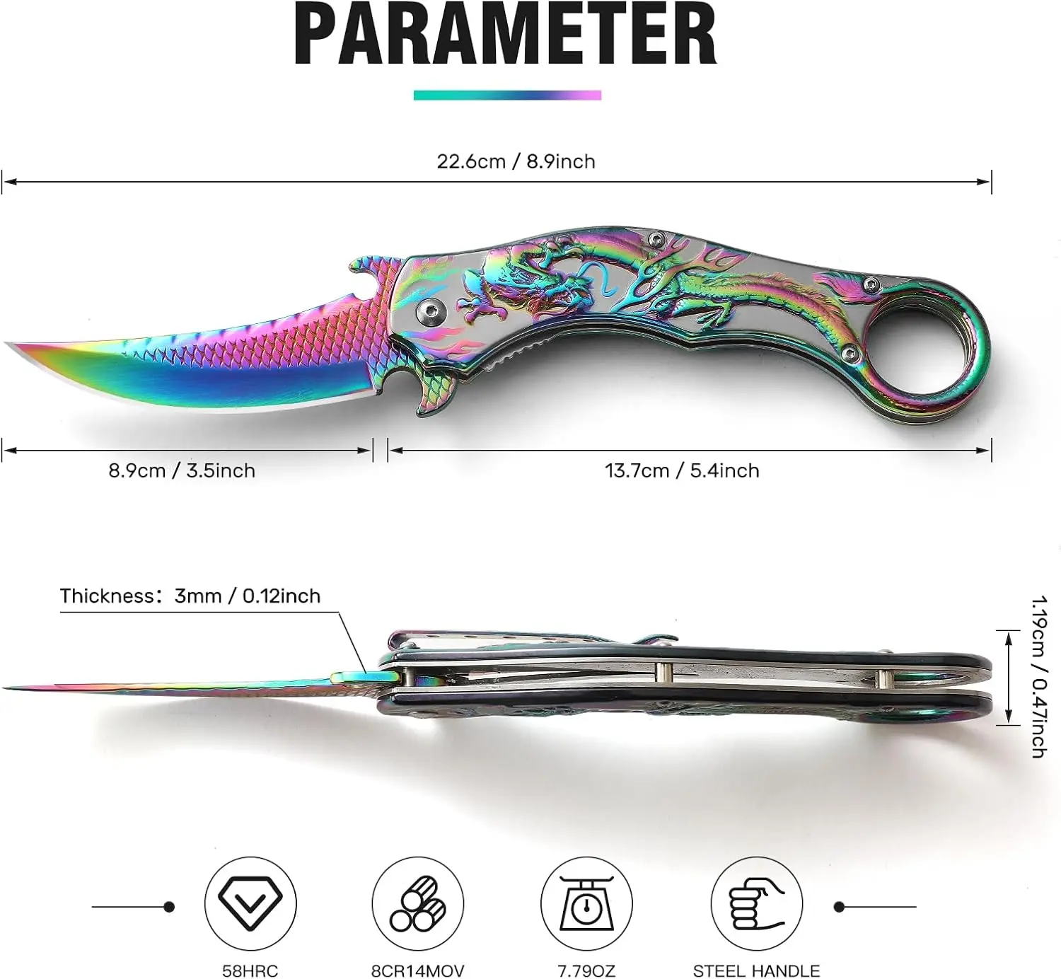 ·ONE HANDED OPERATION SMOOTH AND FAST:The flipper opens smoothly, which is a very important feature when one hand is occupied, allowing you to open the folding knife with one hand and make a crisp sound, very easy to open