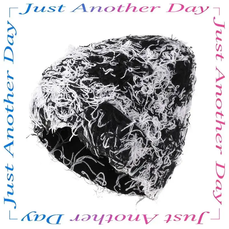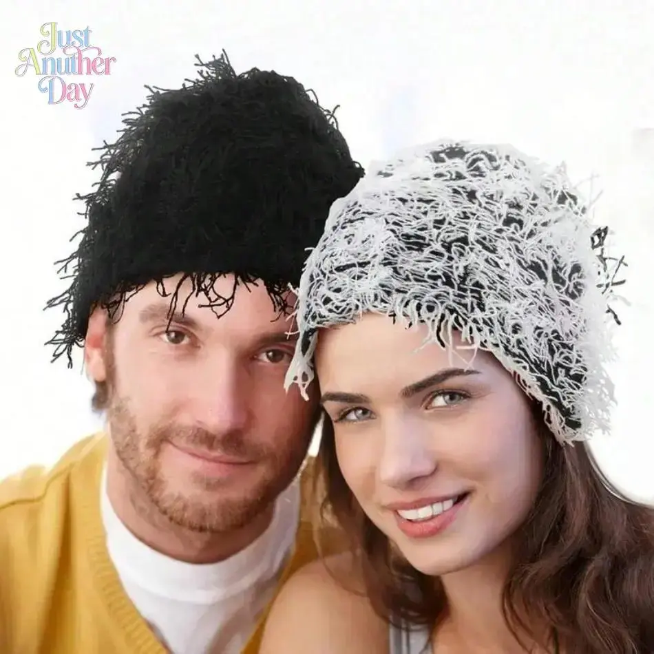 2026 New Arrival Distressed Knitted Fuzzy Beanie – Thick Warm Unisex Winter Hat for Outdoor Daily Wear, TikTokShopBlackFriday Christmas