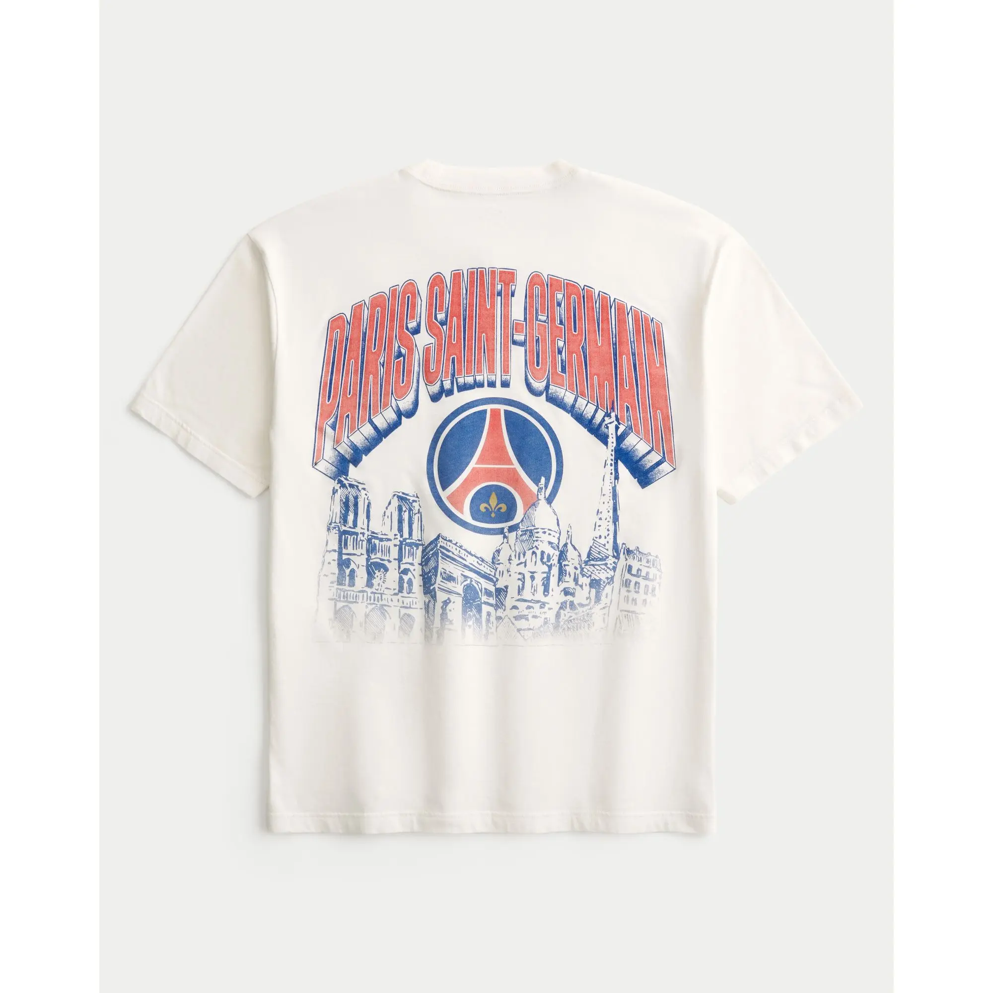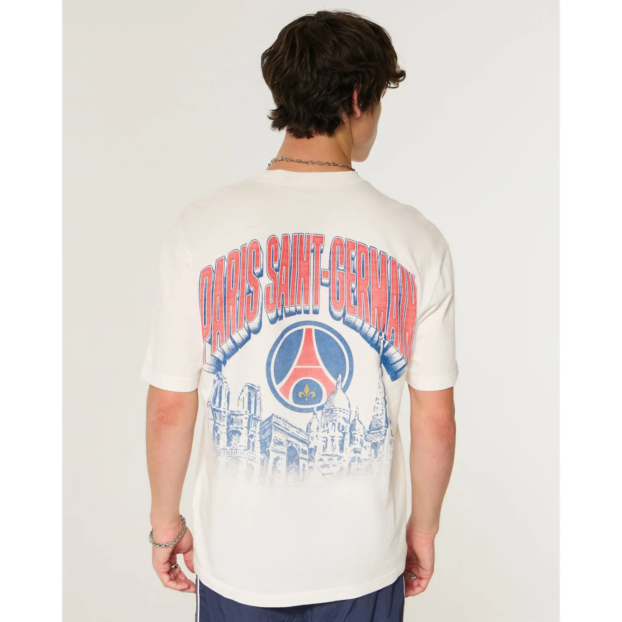 A super soft 100% cotton tee featuring official licensed Paris Saint-Germain F.C. print graphics at the left chest and back. Crew neckline, short sleeves. Imported.